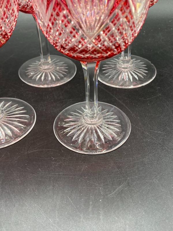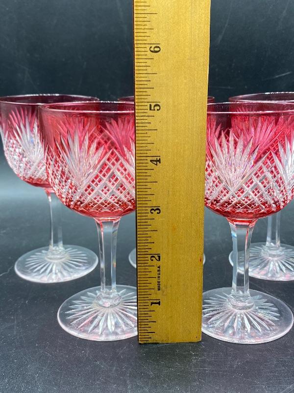 Set of 5 Cranberry Cut Clear Crystal Small Goblets YD#013-1120-00060