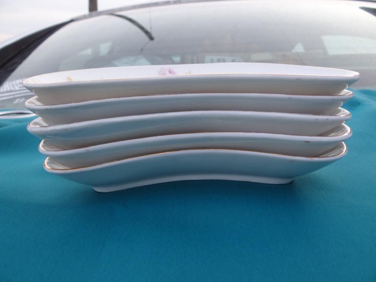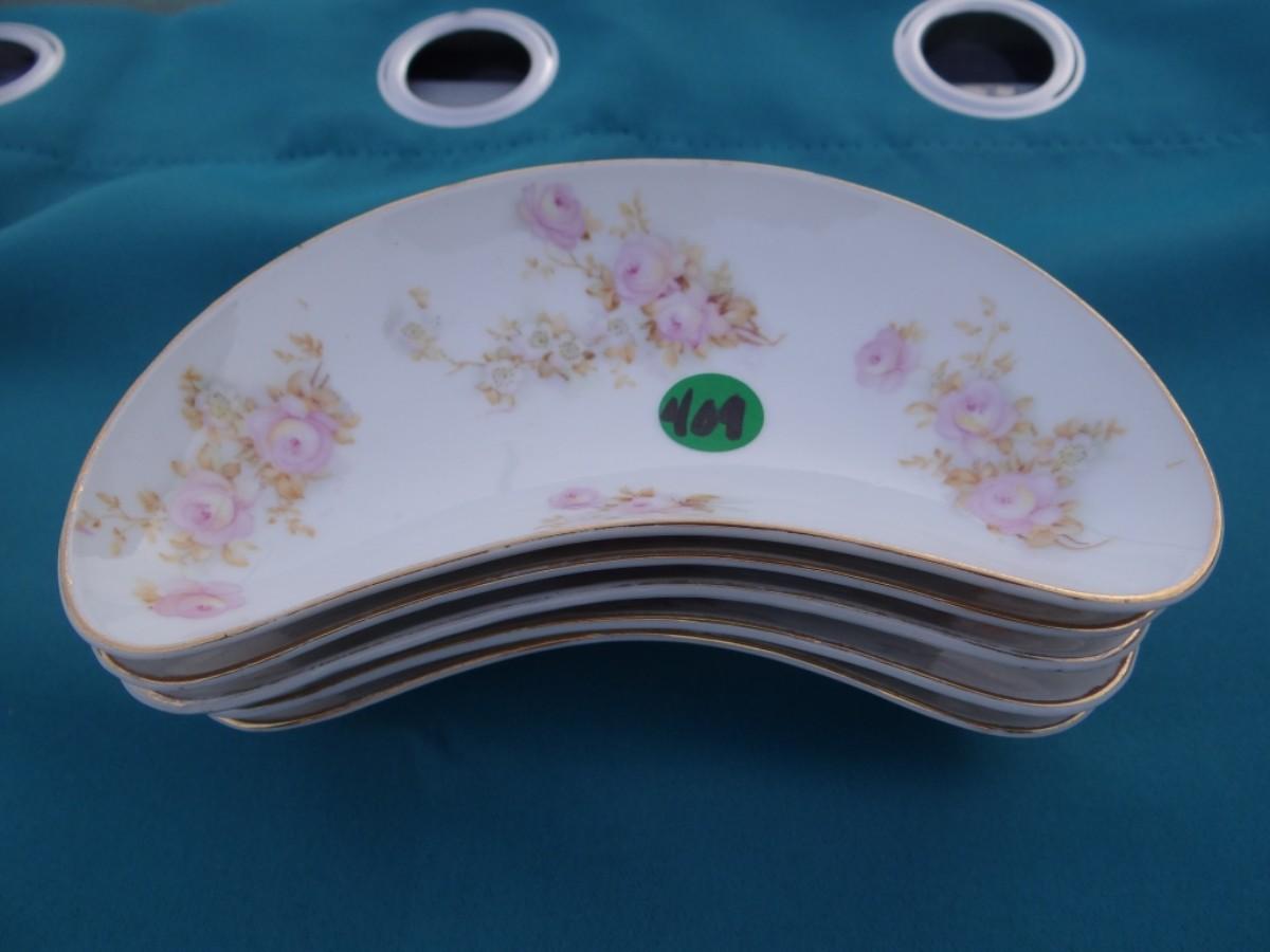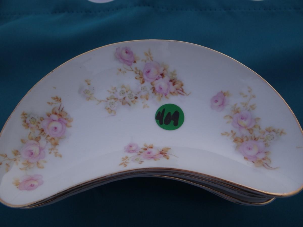 SET OF 5 CRESENT SALAD PLATES PINK ROSES