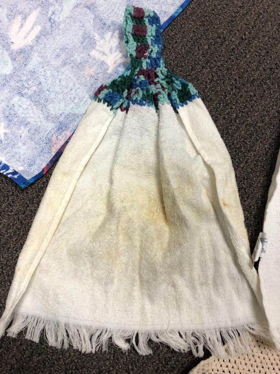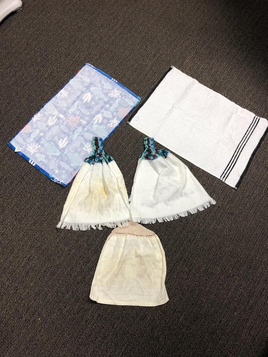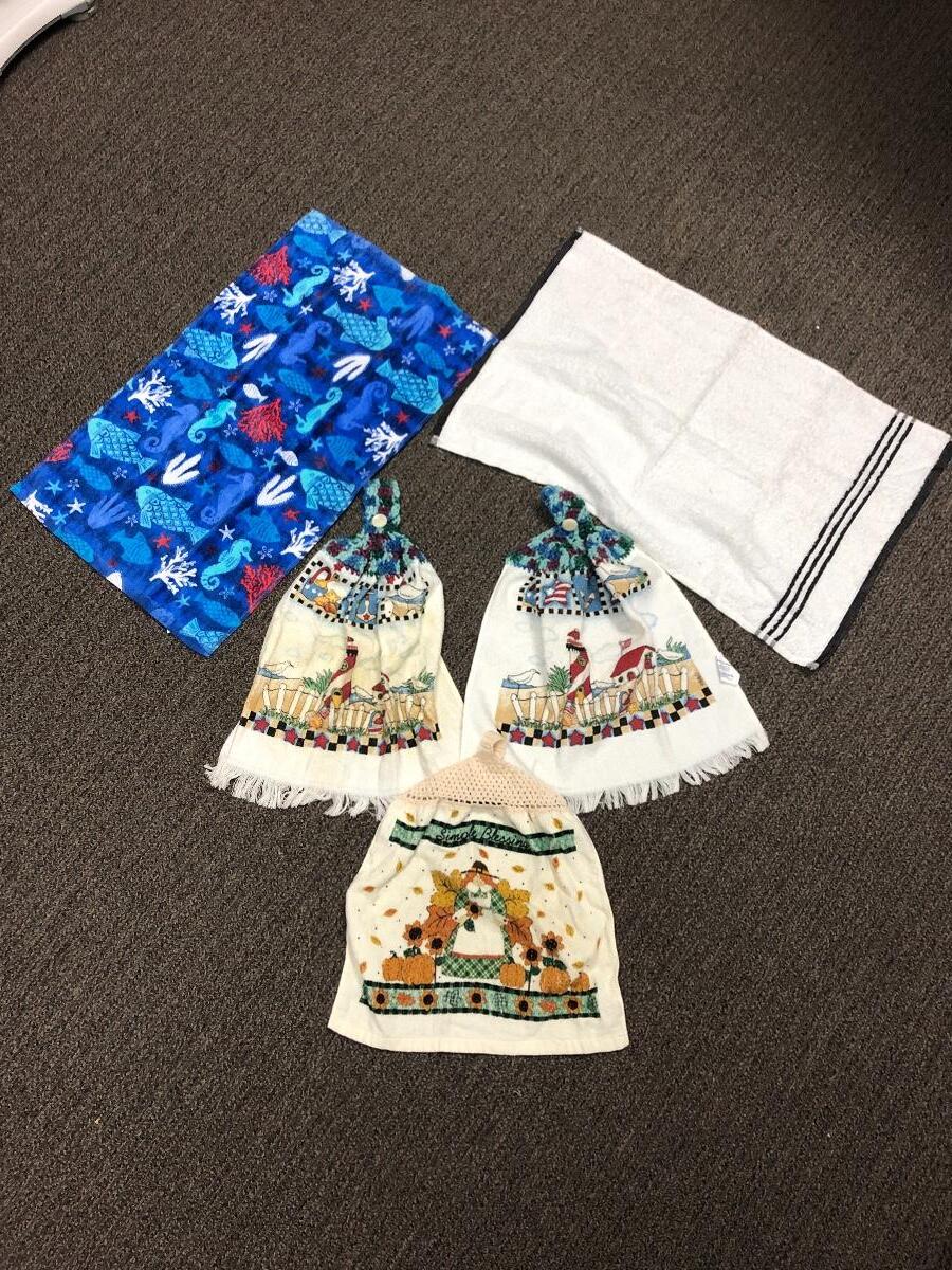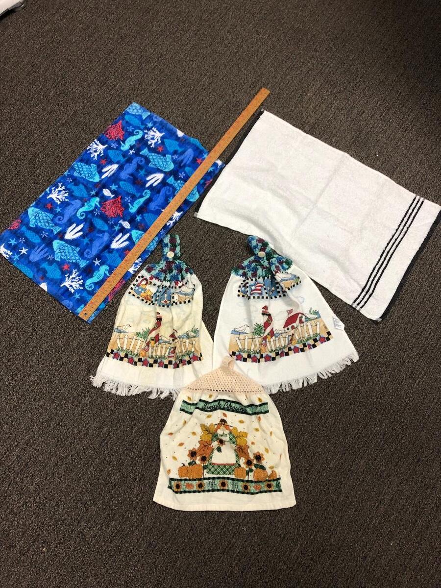 Set of 5 dish and hand kitchen towels lot. May have discolor
