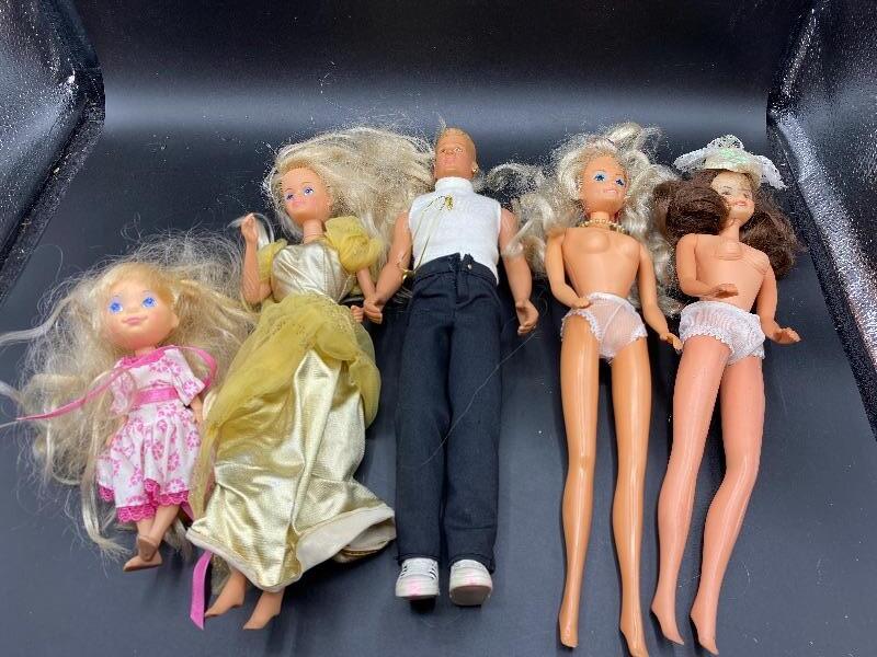 Set of 5 fashion dolls. Off brand, not Barbie or friends. Some are naked. All have wild hair except the male doll. Need a little TLC.