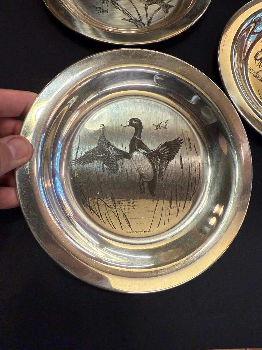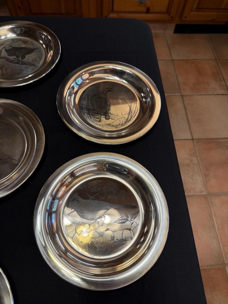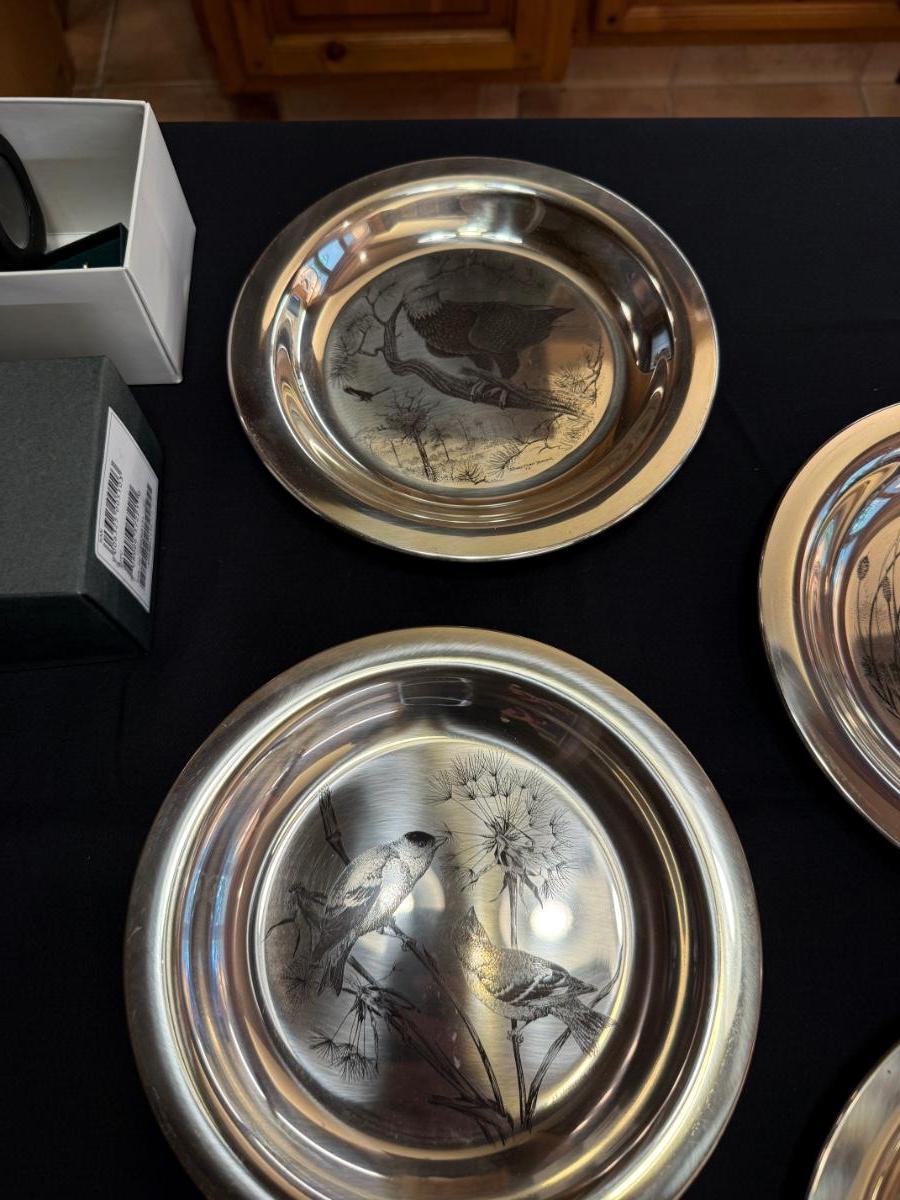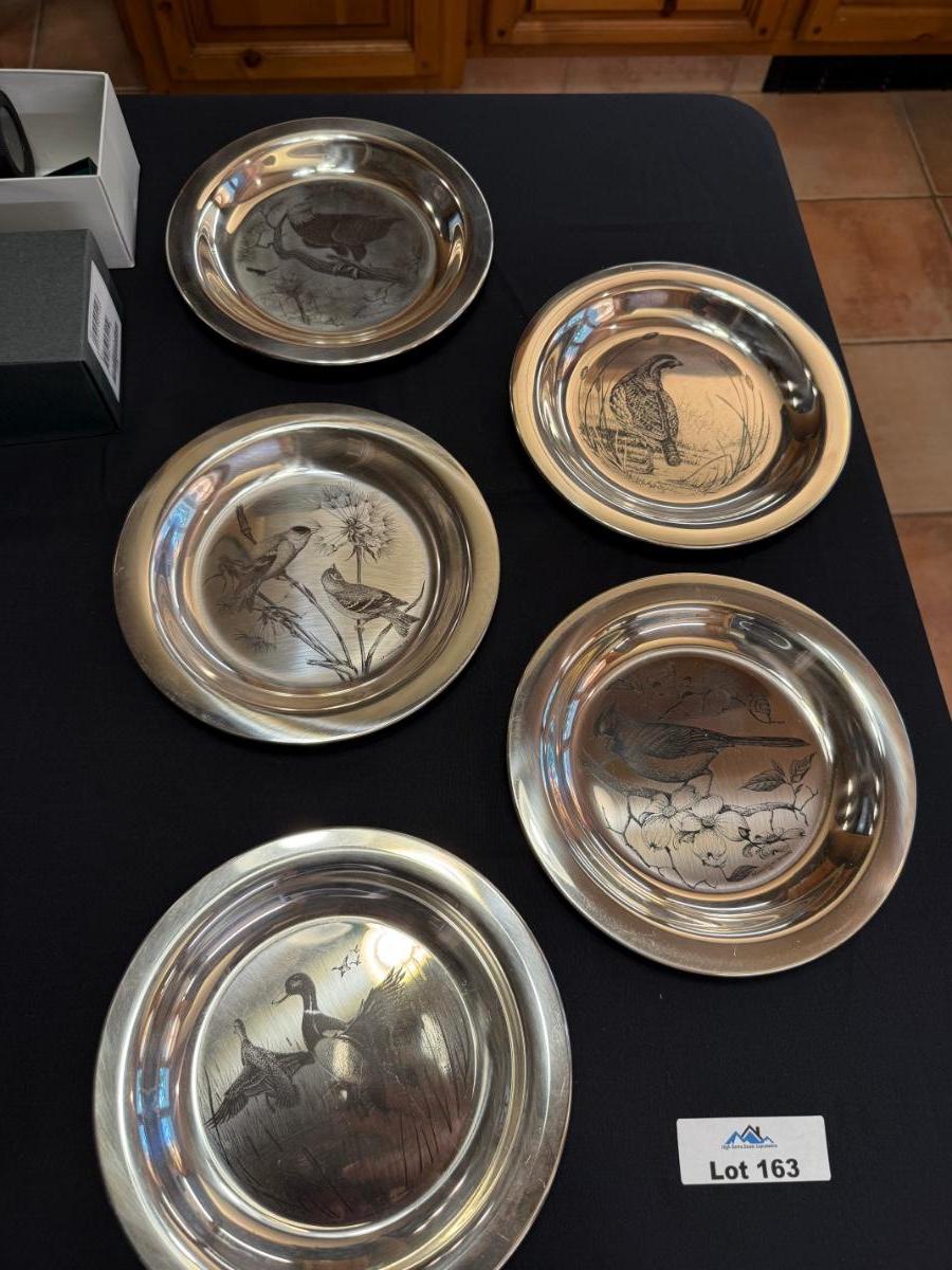 Set of 5 Franklin Mint Sterling Silver Collector Plates - Birds 978 Grams total