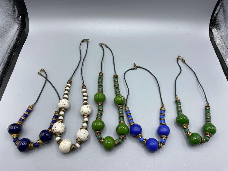 Set of 5 Glazed Clay Beaded Necklaces