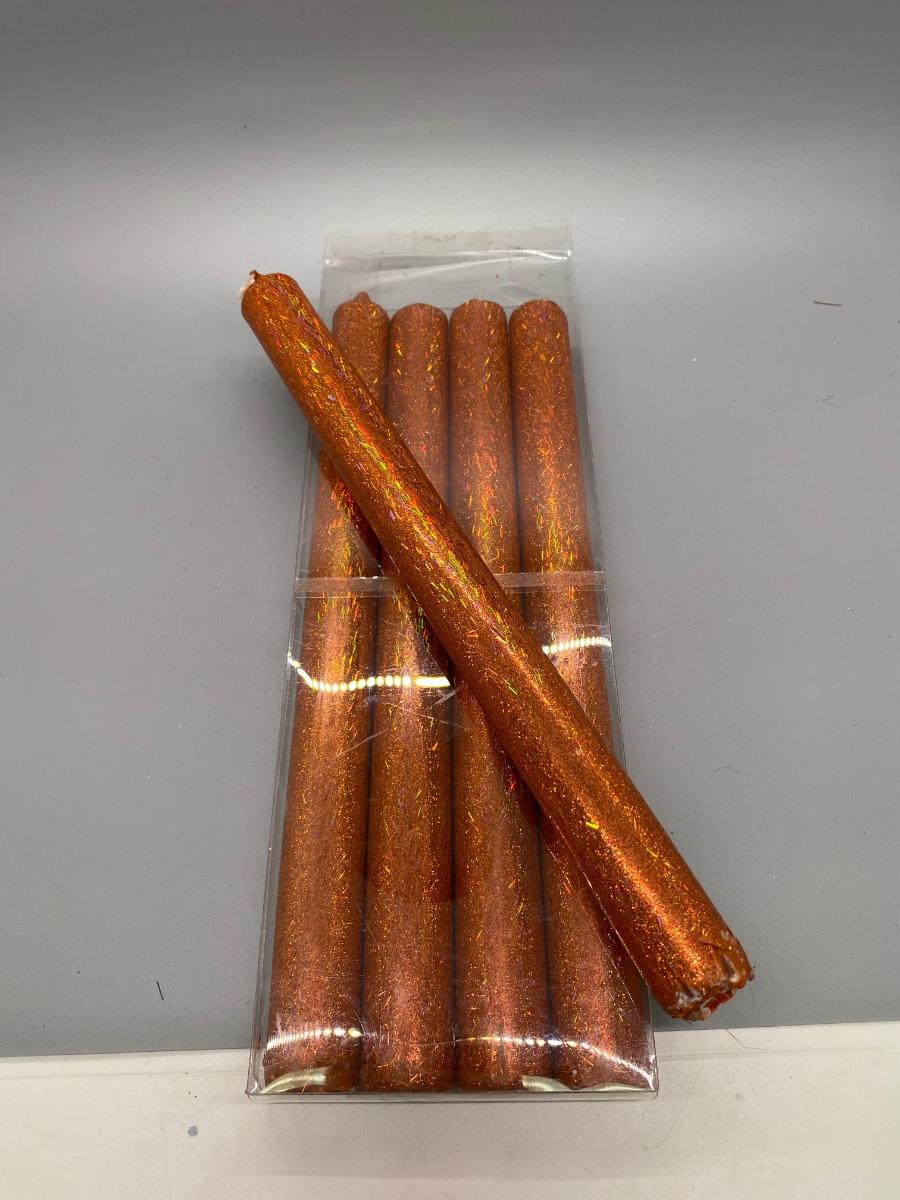 Set of 5 Glitter Metallic Orange Taper Candles