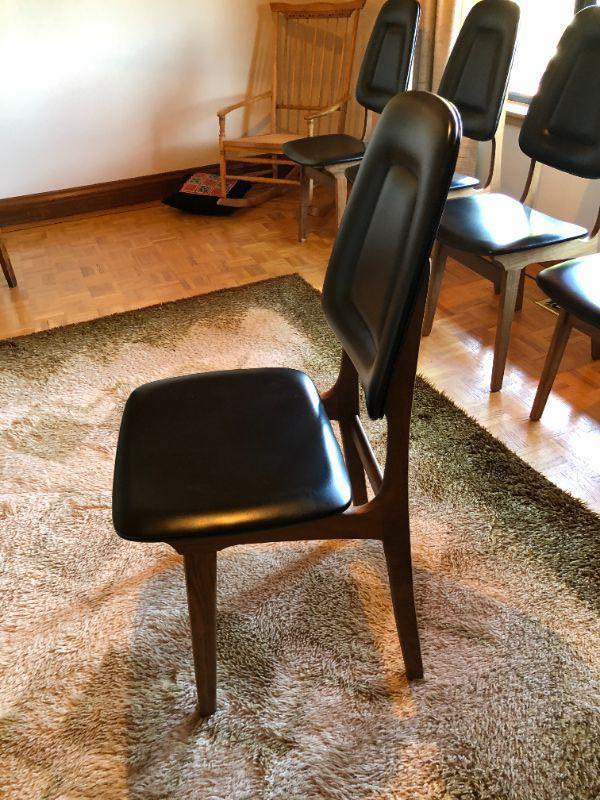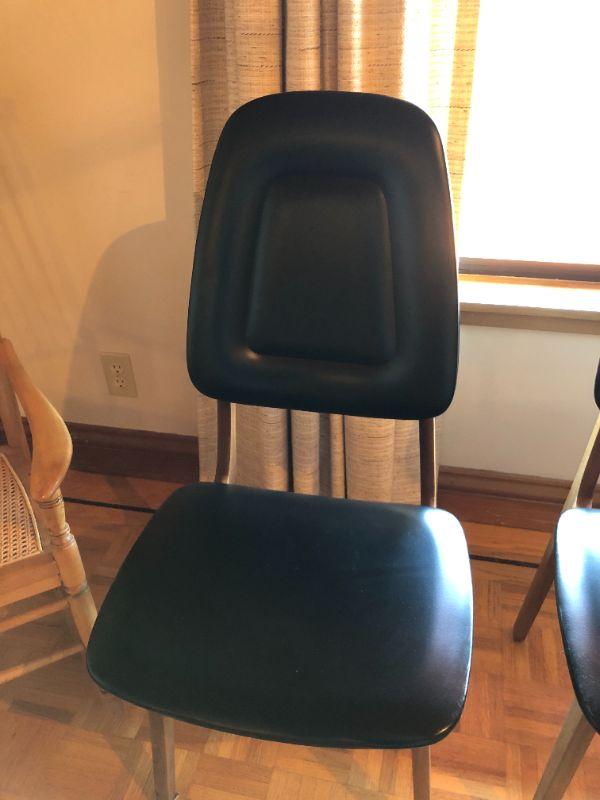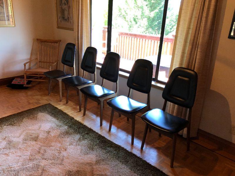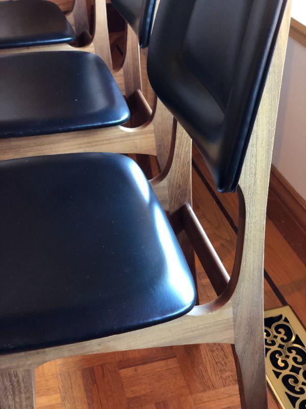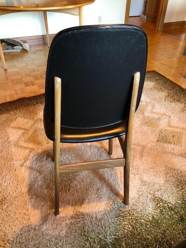 Set of 5 Gorgeous Mid Century Modern Black Leather and Wood Chairs