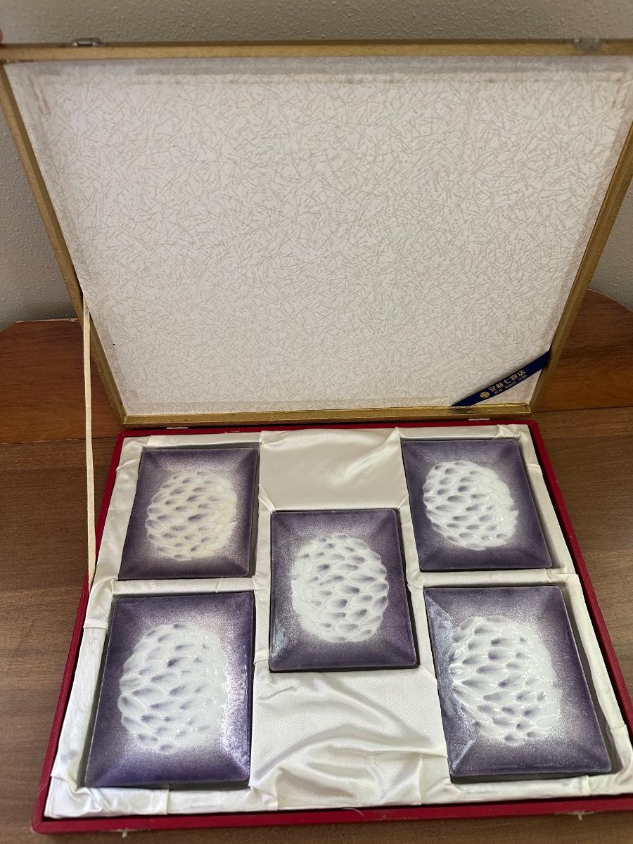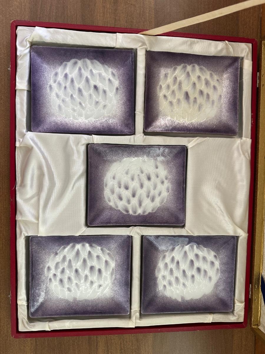 Set of 5 Japanese Purple and White Porcelain sushi Trays in Original Box