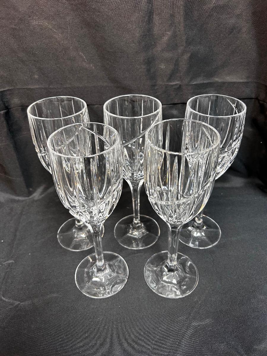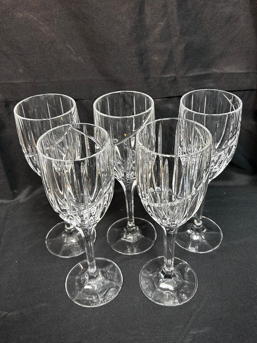 Set of 5 Large Mikasa Uptown Crystal Stemware Wine Glass Goblets. In excellent condition. About 9" size.
