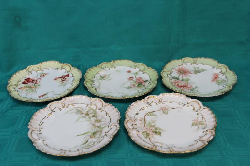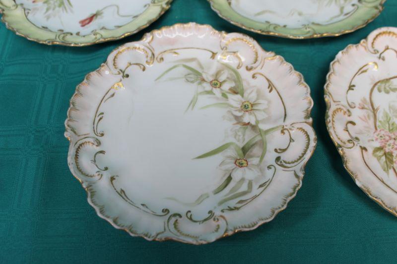 Set of 5 Limoges Plates. Matching shape with different flower designs. There are a couple very small chips along the edge of 4 plates (photo).