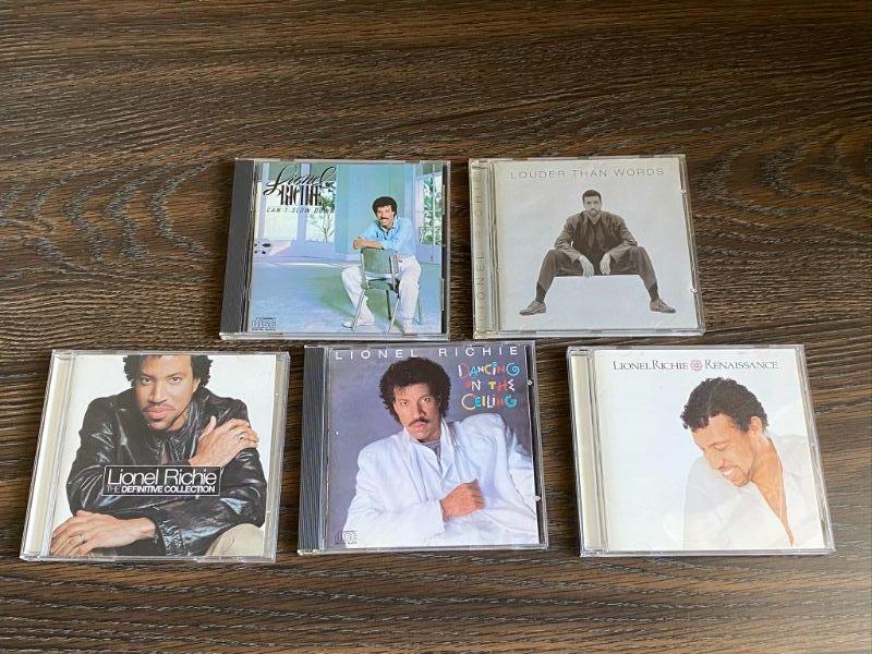 Set of 5 Lionel Richie CDs. All in great condition. Included titles are Can't Slow Down, Louder Than Words, Dancing on the Ceiling, the Definitive Collection, and Renaissance.