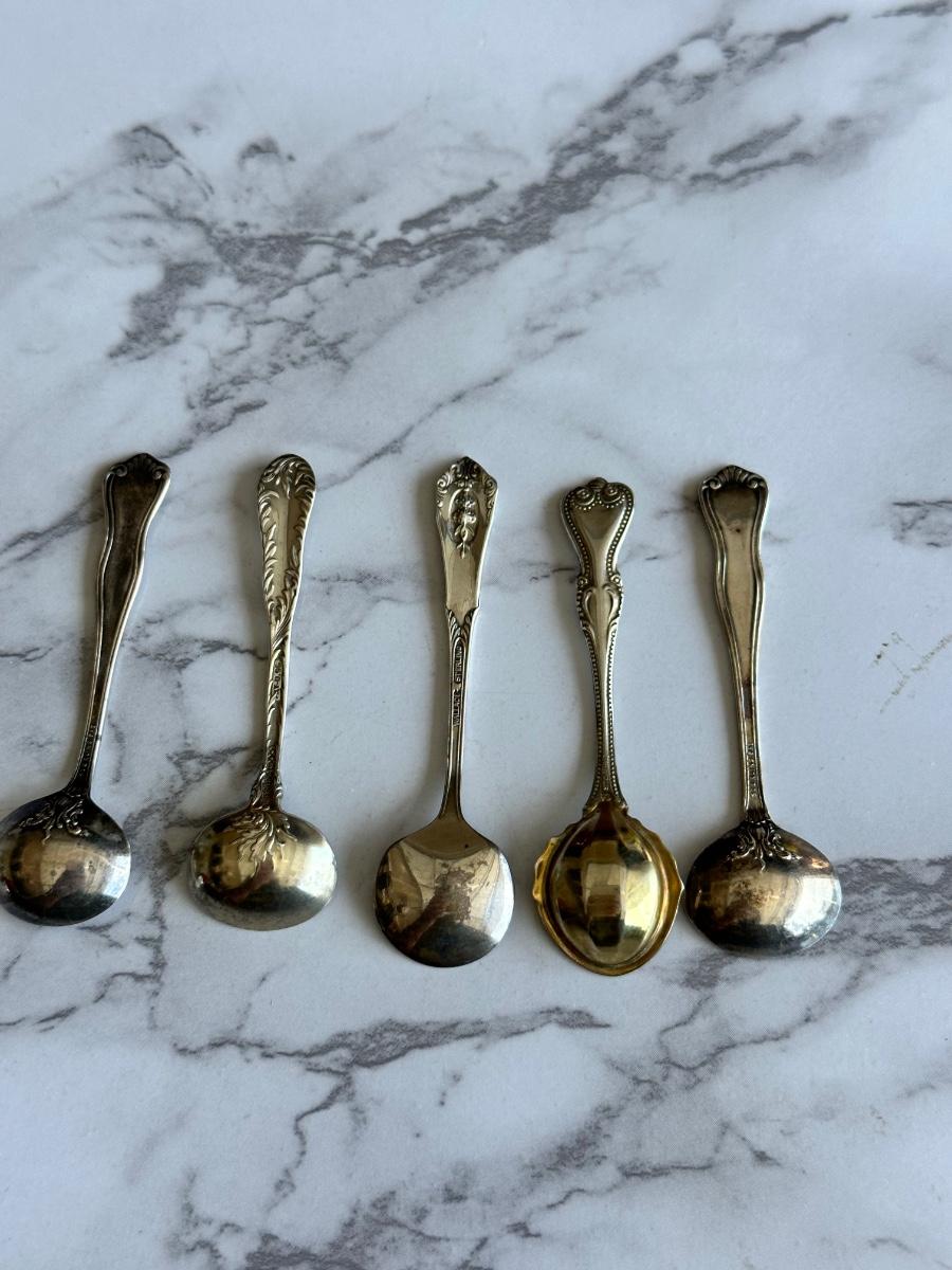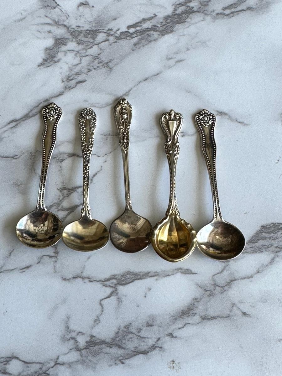 Set of 5 miniature sterling silver spoons