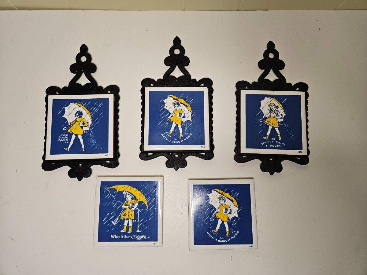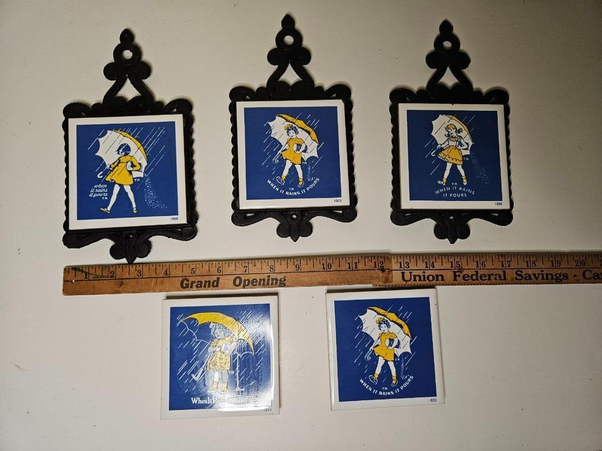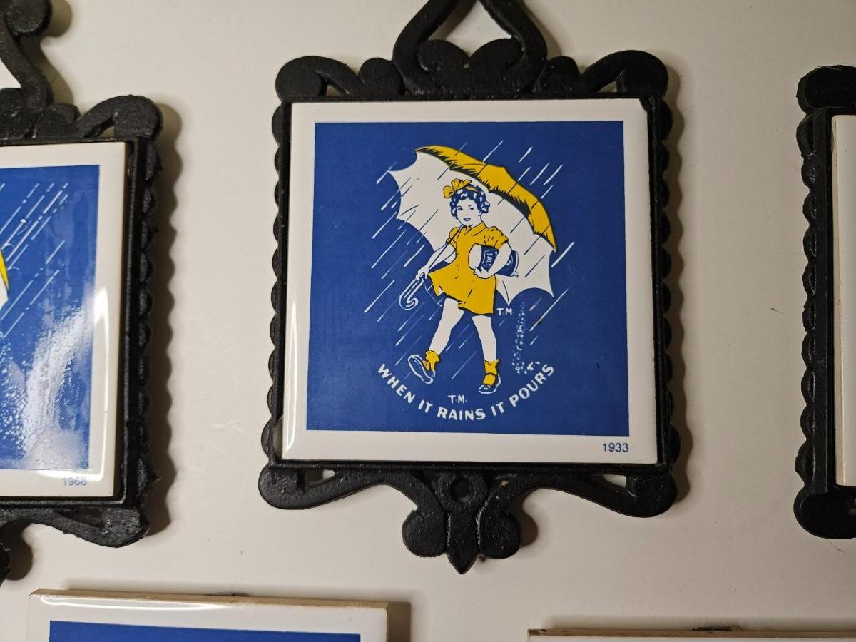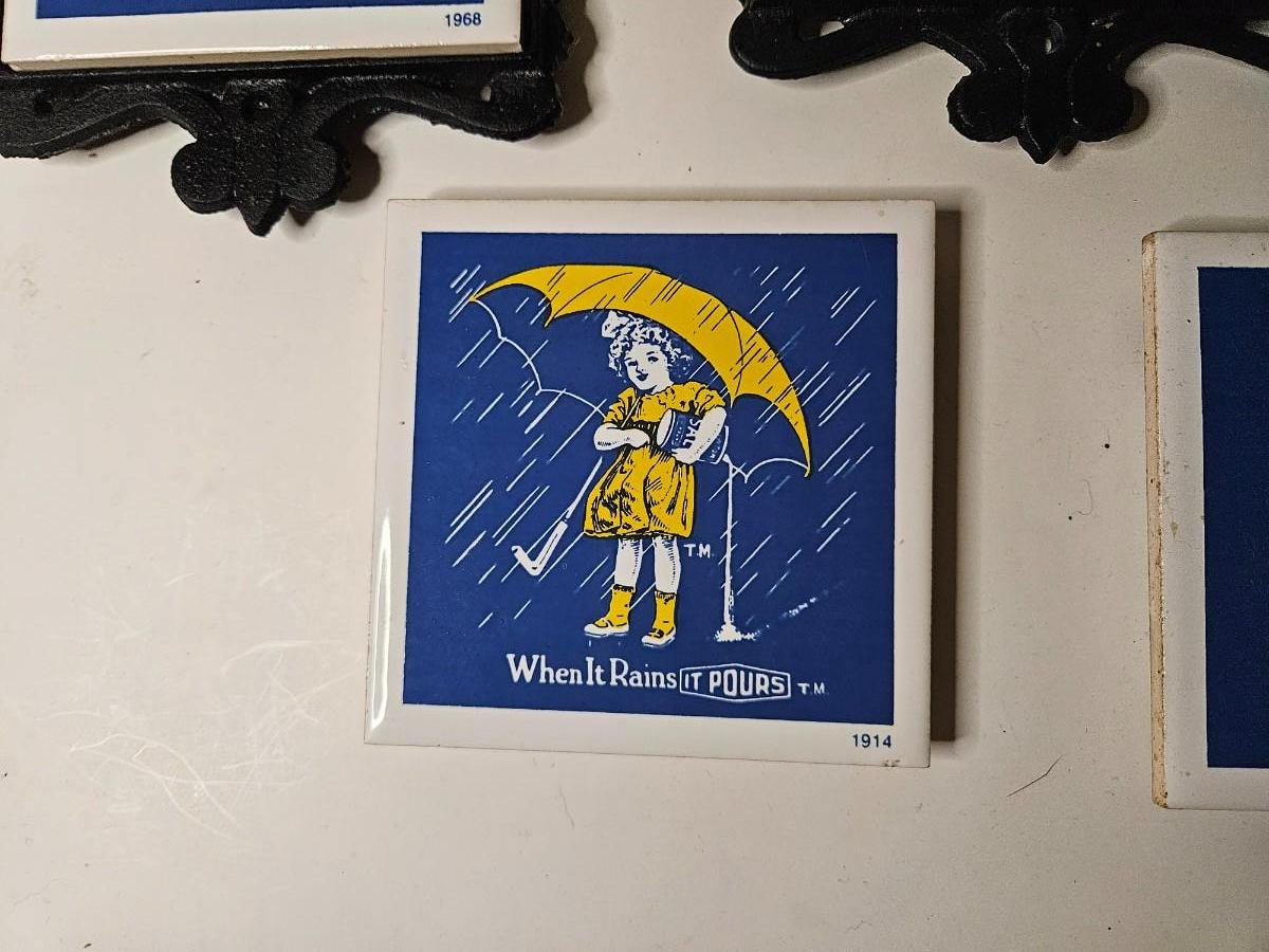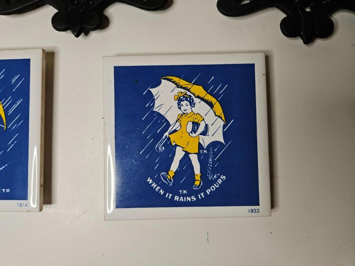 Set of 5 Morton Salt Girl Tiles/Trivots