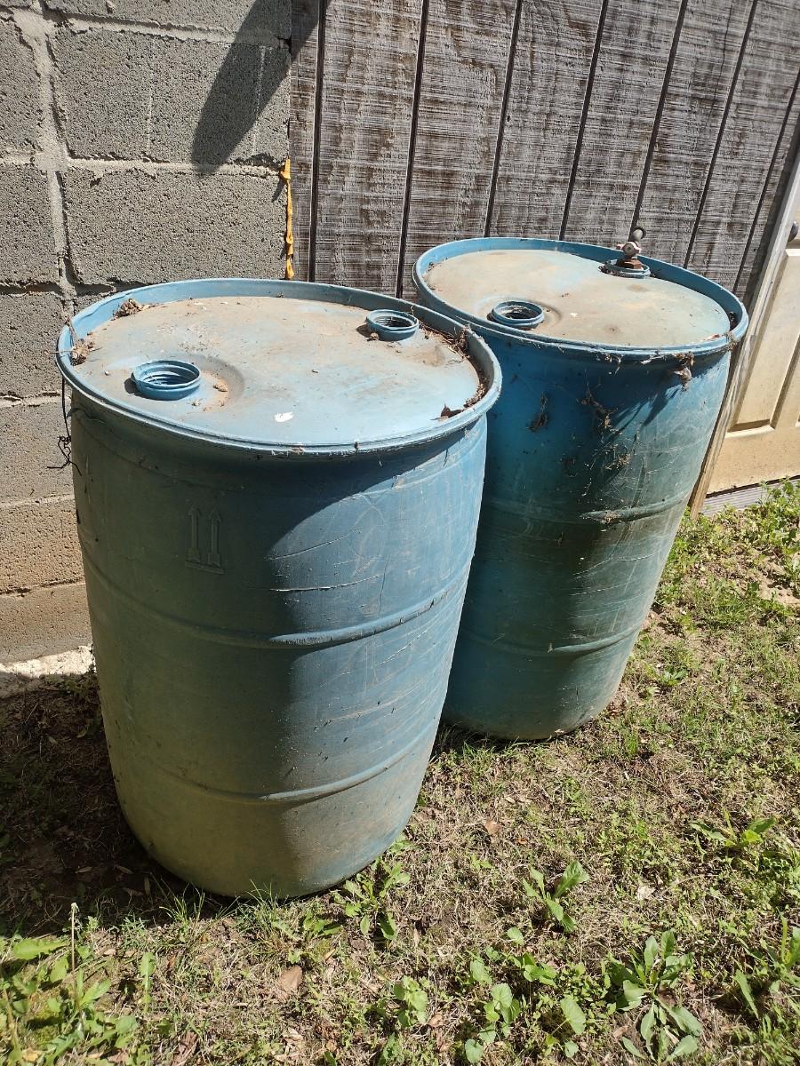 Set of 5 Plastic Drum Barrells (See all Pictures) 55 Gallon