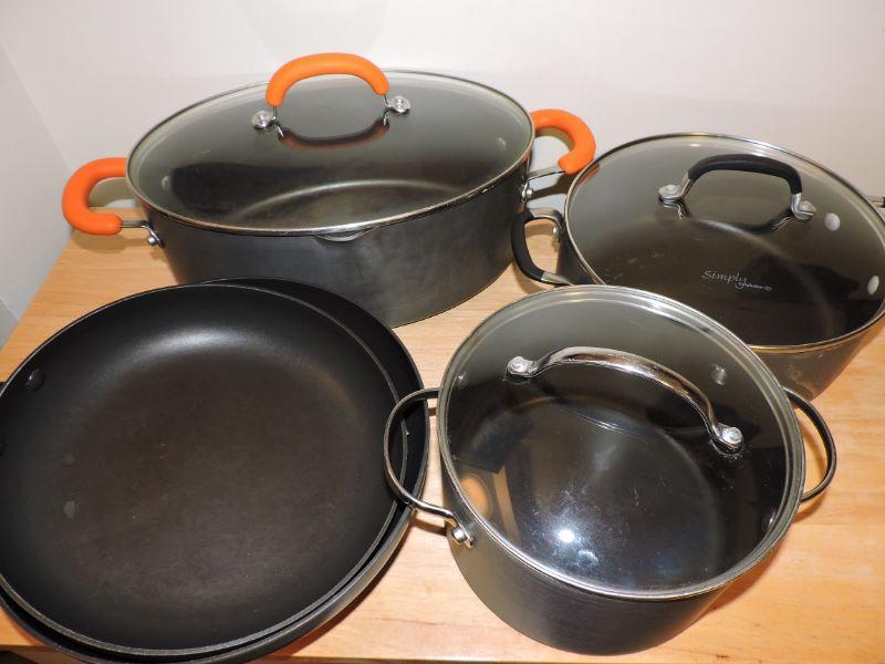 Set of 5 Pots and Pans ““ Including Rachel Ray Covered Oval Pasta Pot
