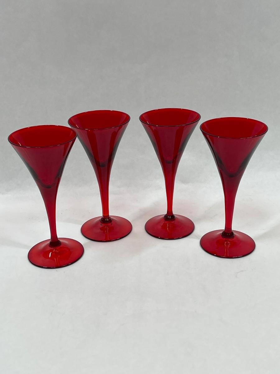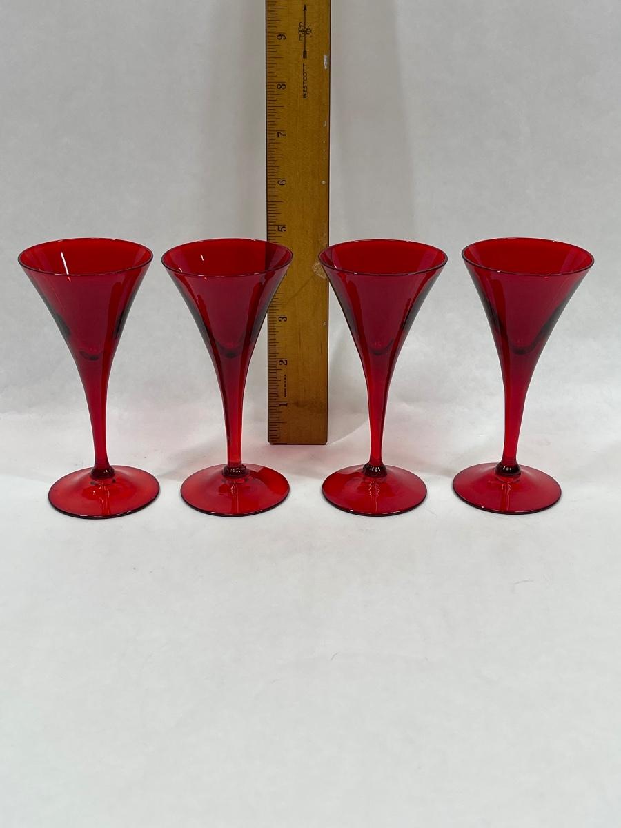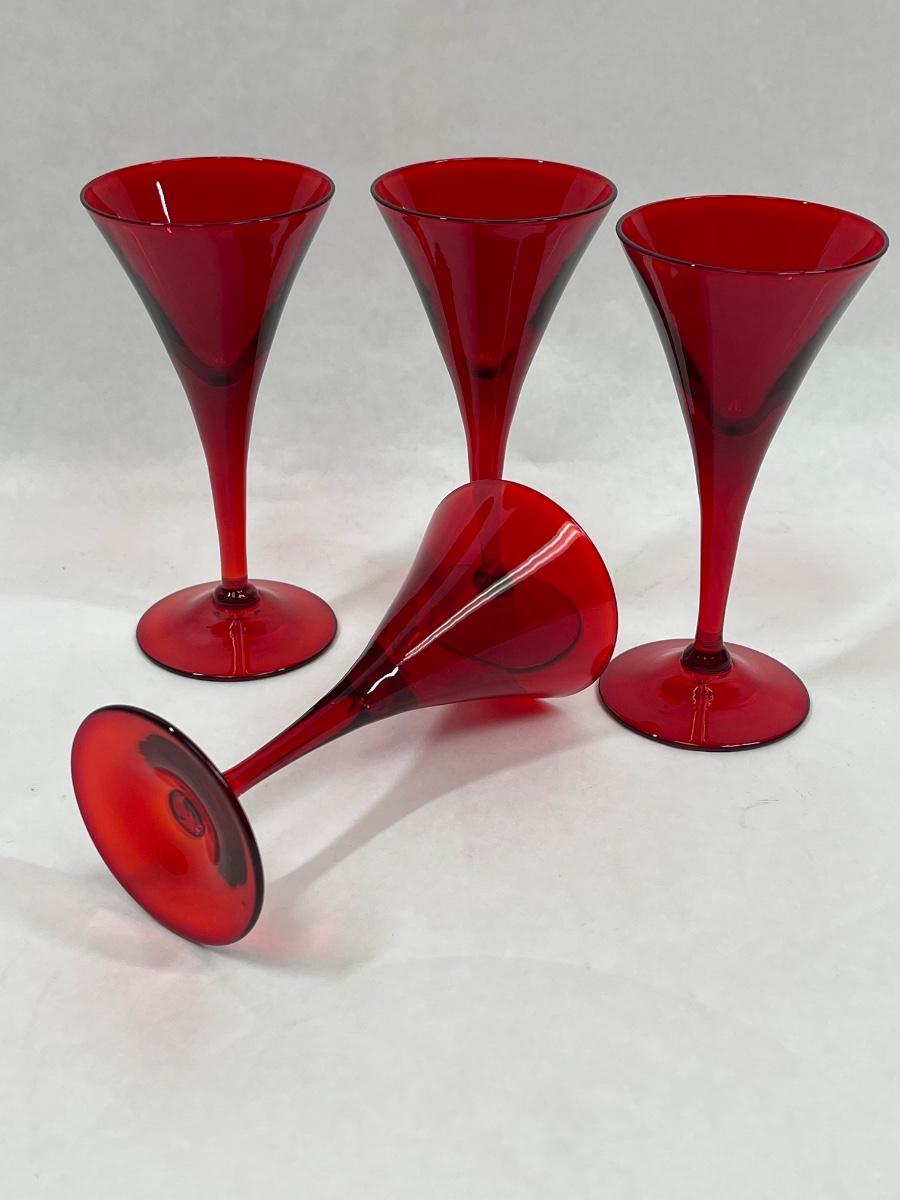 Set of 4 Blenko Red Glass Champagne Flutes