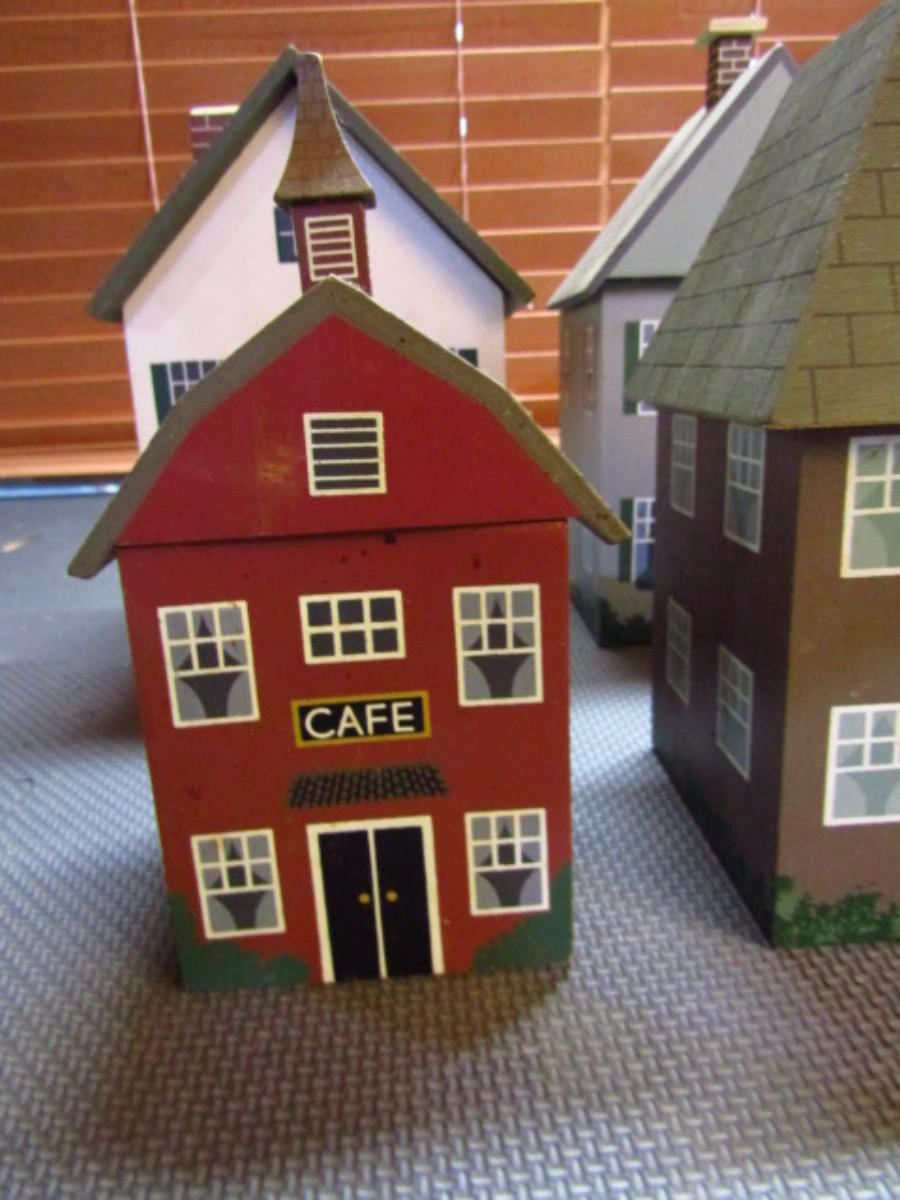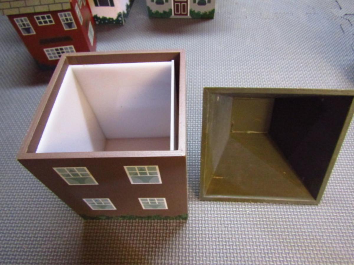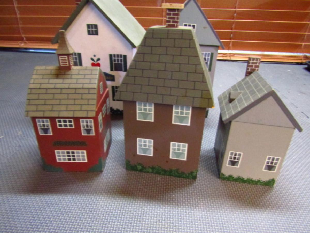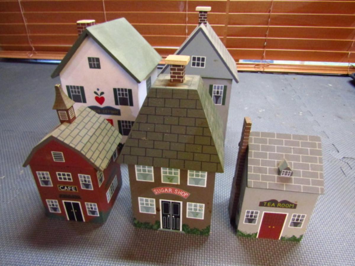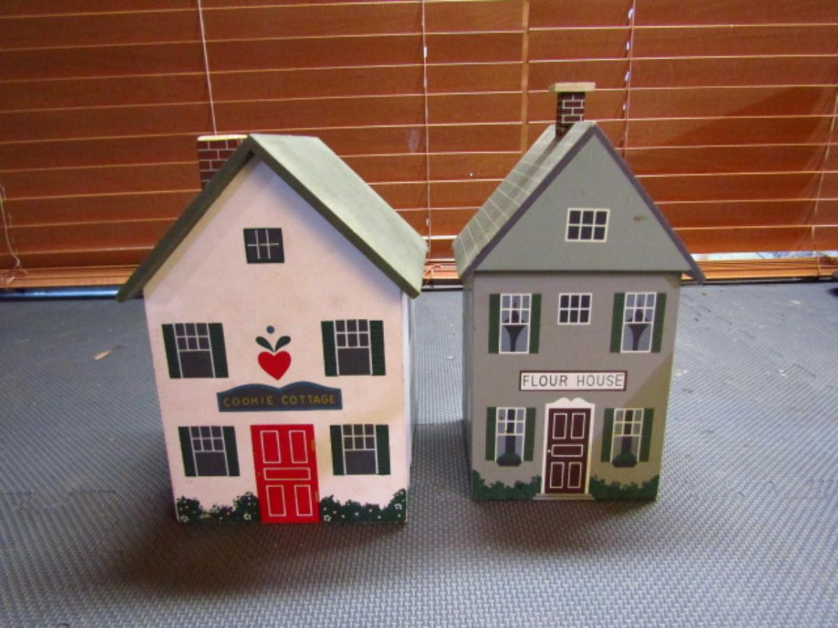 Set Of 5 Vintage Country Cottage Wooden Canisters with Plastic Inserts (G)