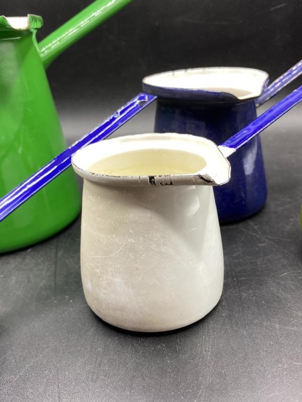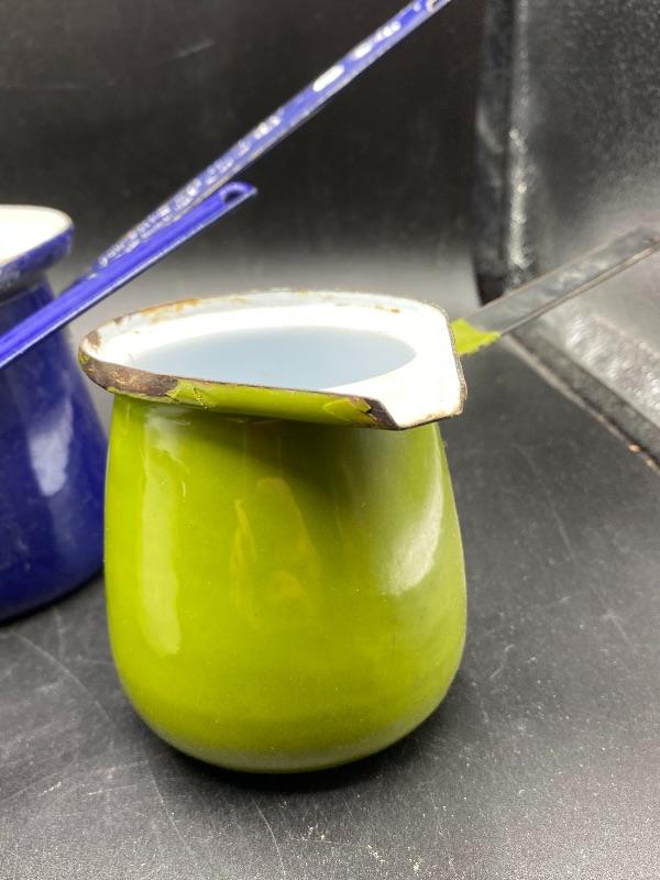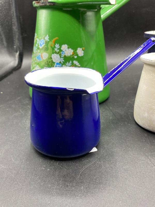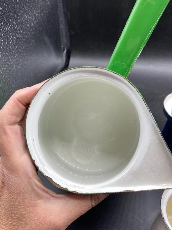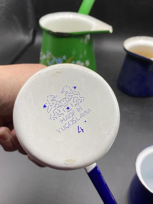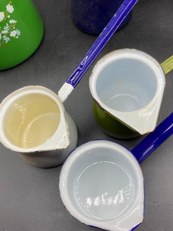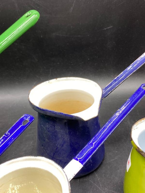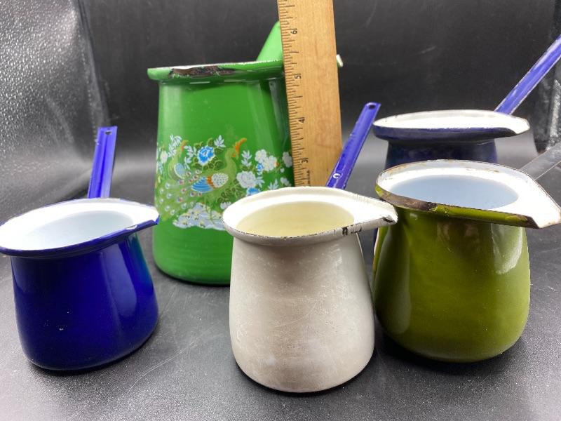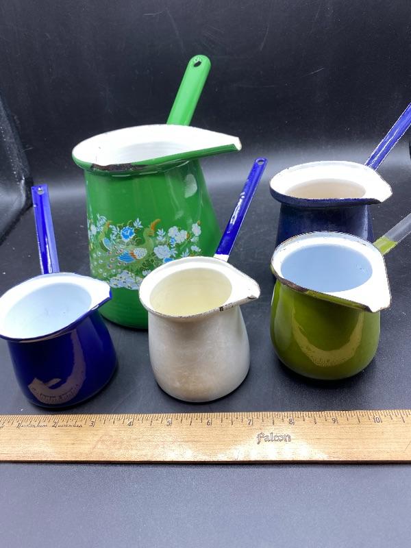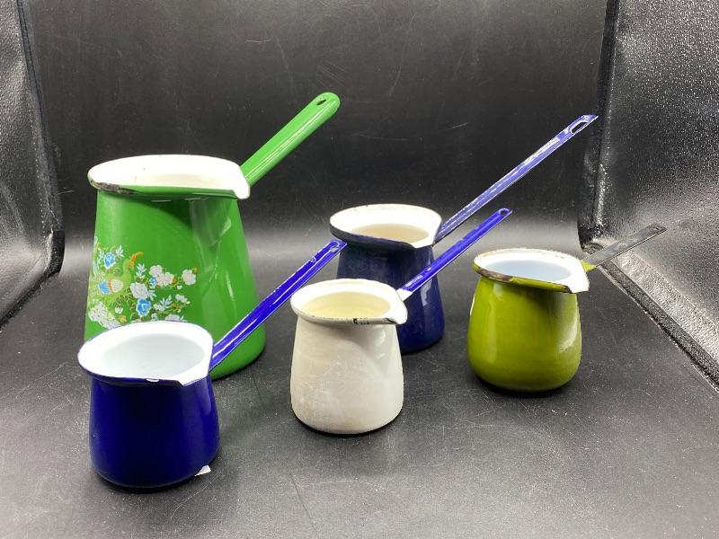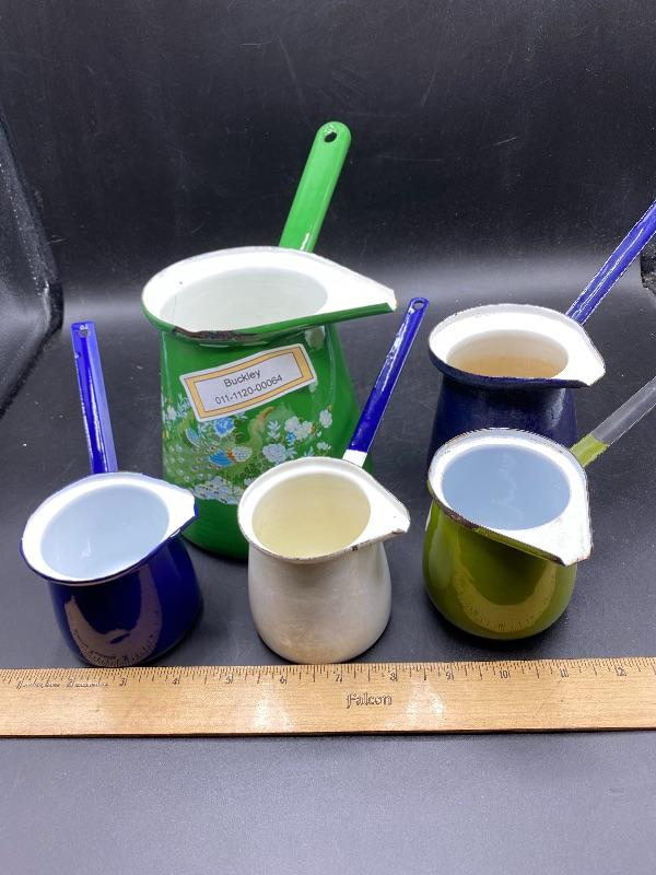 Set of 5 Vintage Enameled Metal Single Handle Sauce Pots YD#011-1120-00064