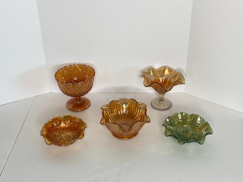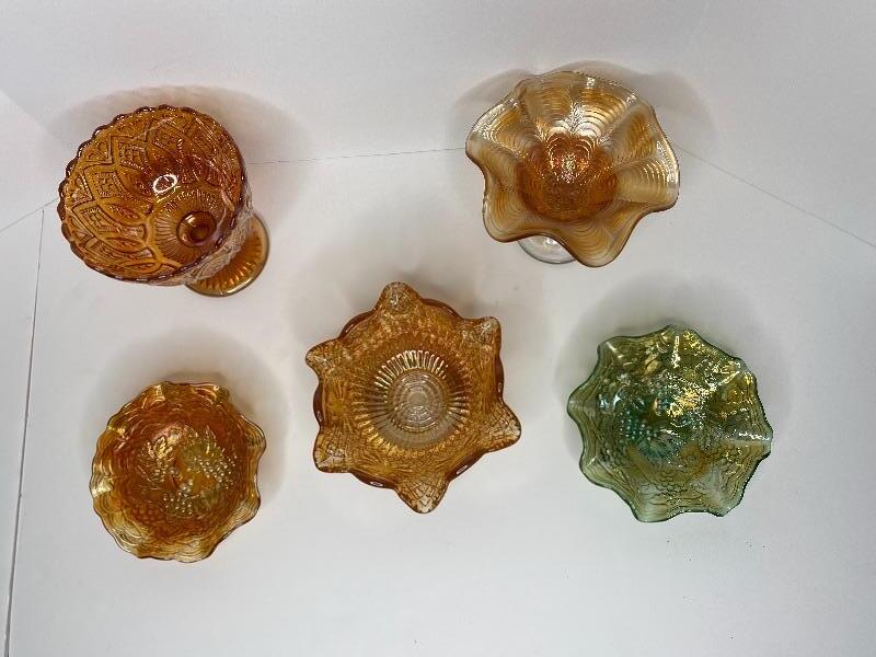 Set of 5 Vintage Carnival Glass Candy Dishes