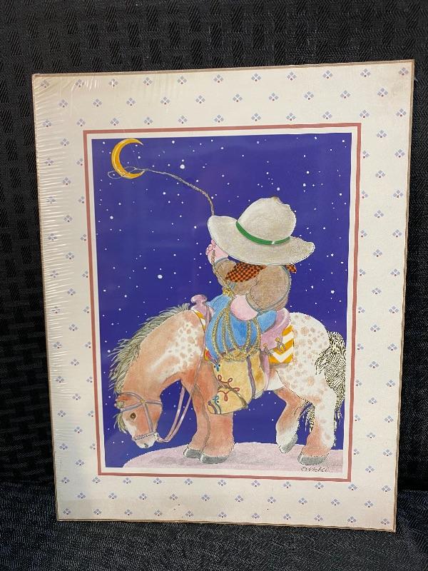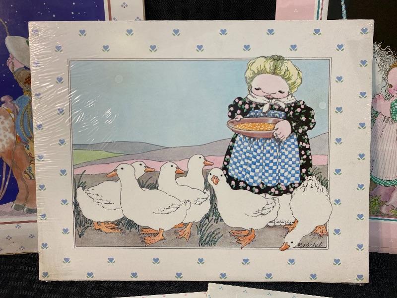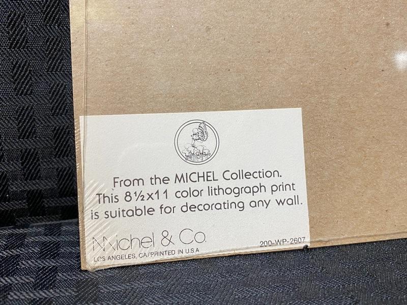 Set of 5 vintage MICHEL Collection lithograph prints. All still in plastic, cardboard backing. 8.5"x11" size.