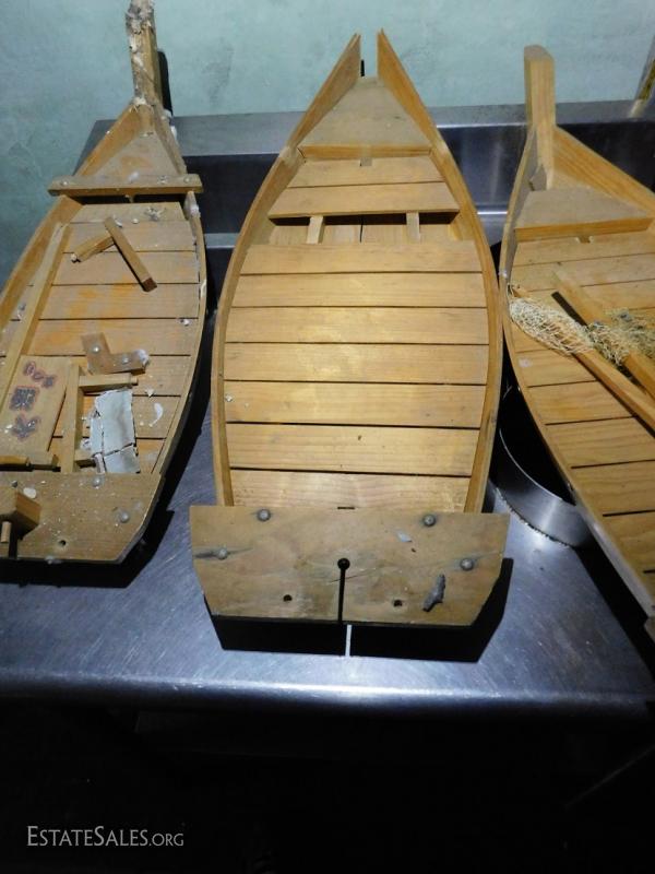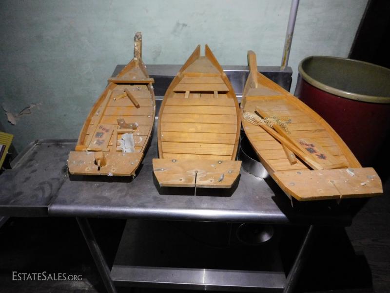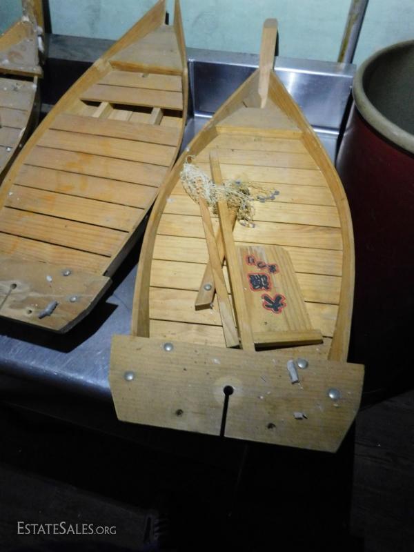 Set of 5 Wood Sushi Boats hand made and in various condition and size. Can be used for other purposes. .