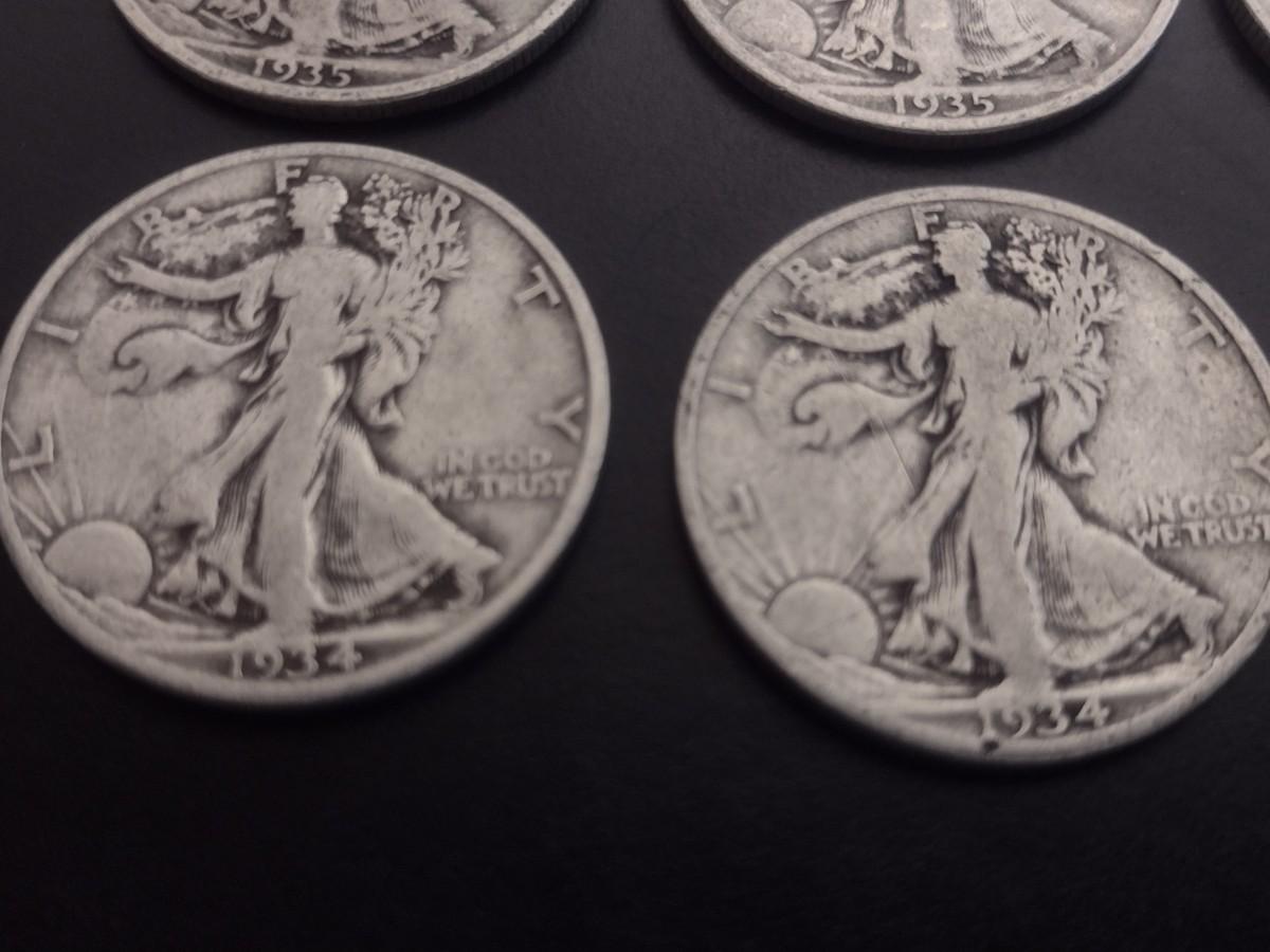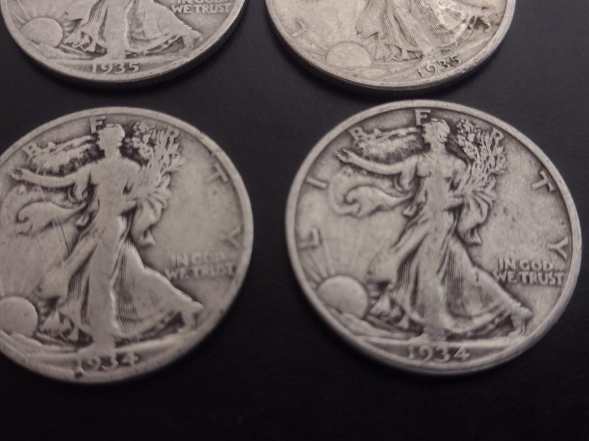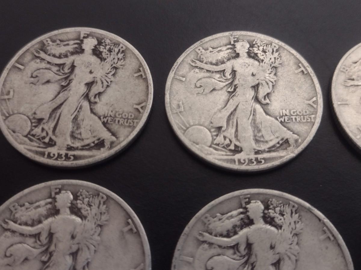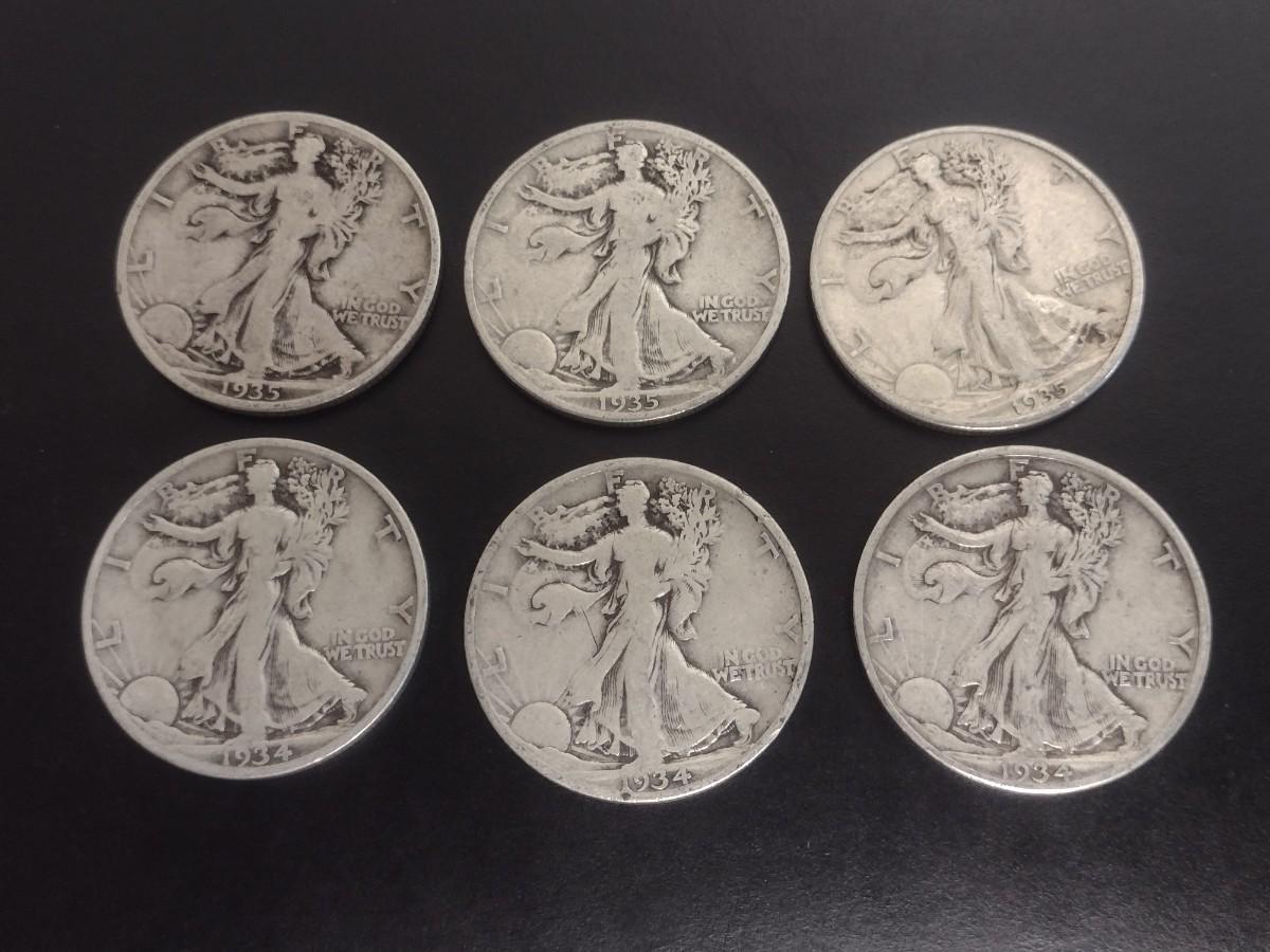 Set of 6 1930's U.S. Mint Walking Liberty Silver Half-Dollars Circulated (#111)