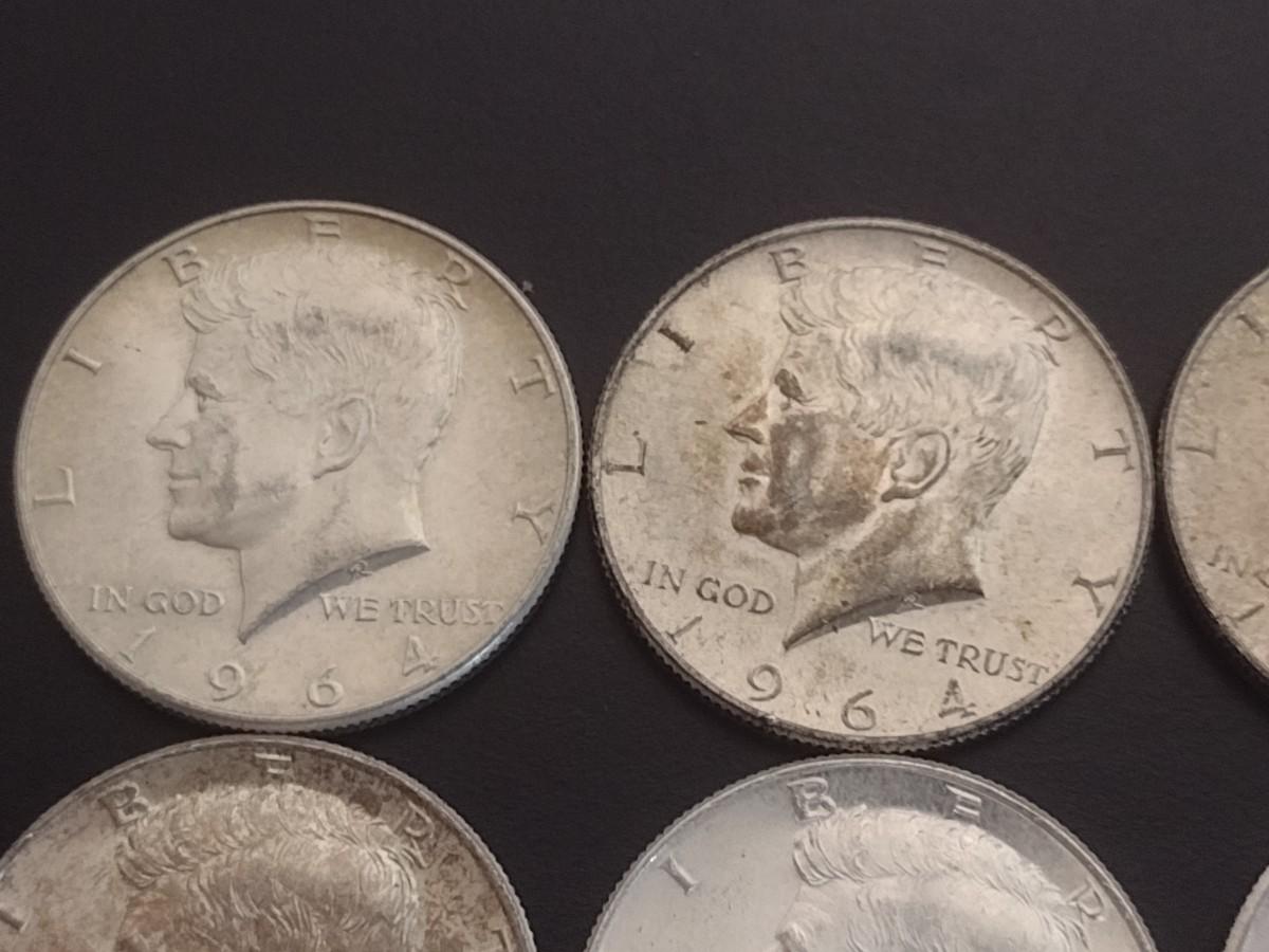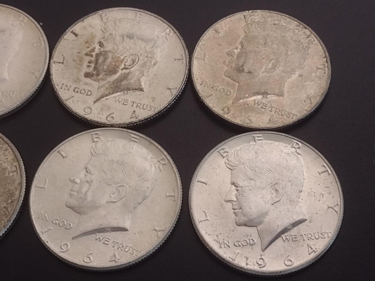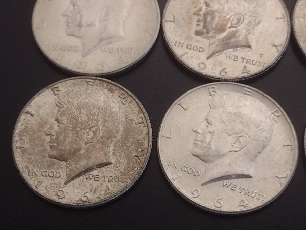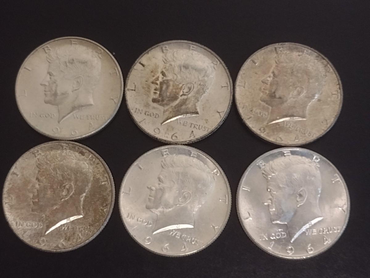 Set of 6 1964 U.S. Kennedy Silver Half-Dollars Circulated (#108)