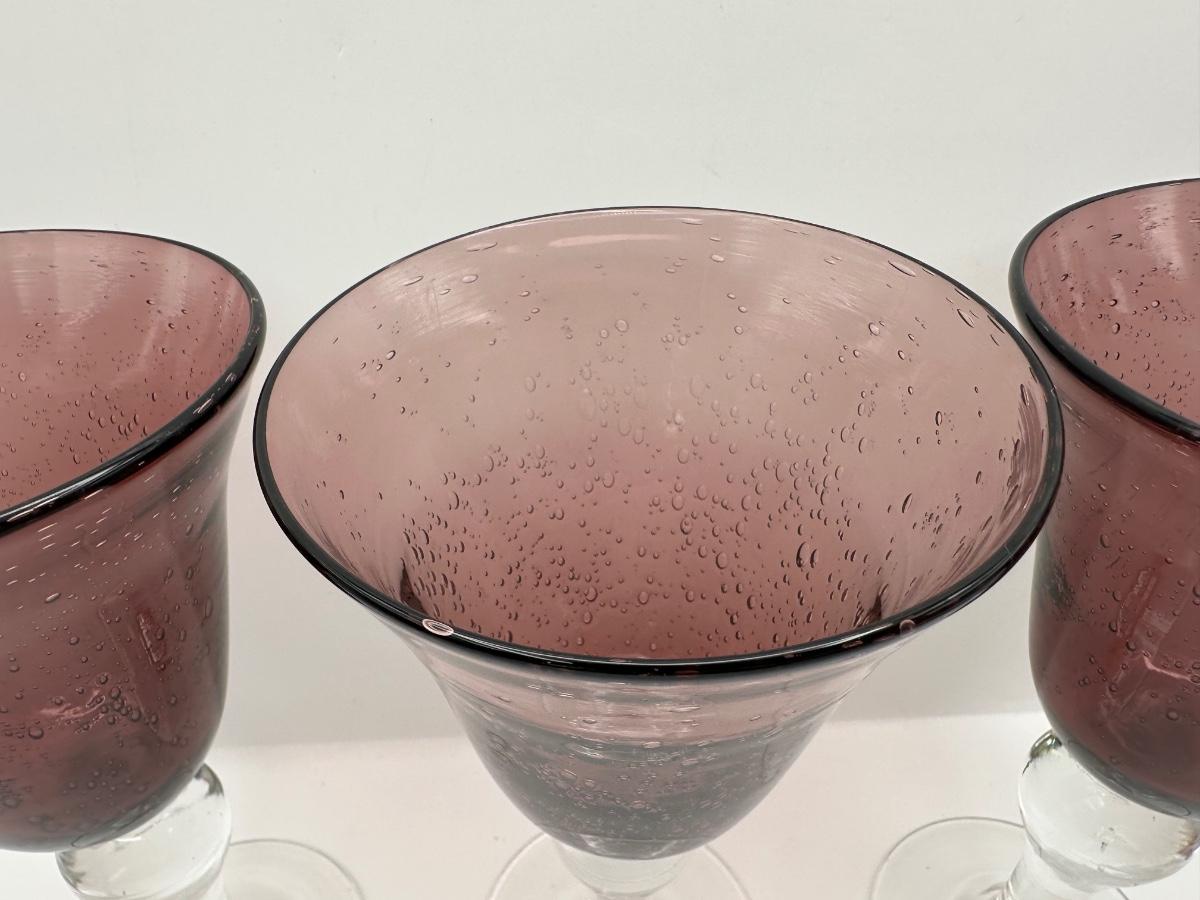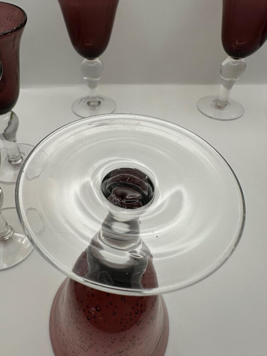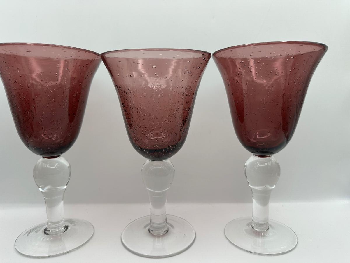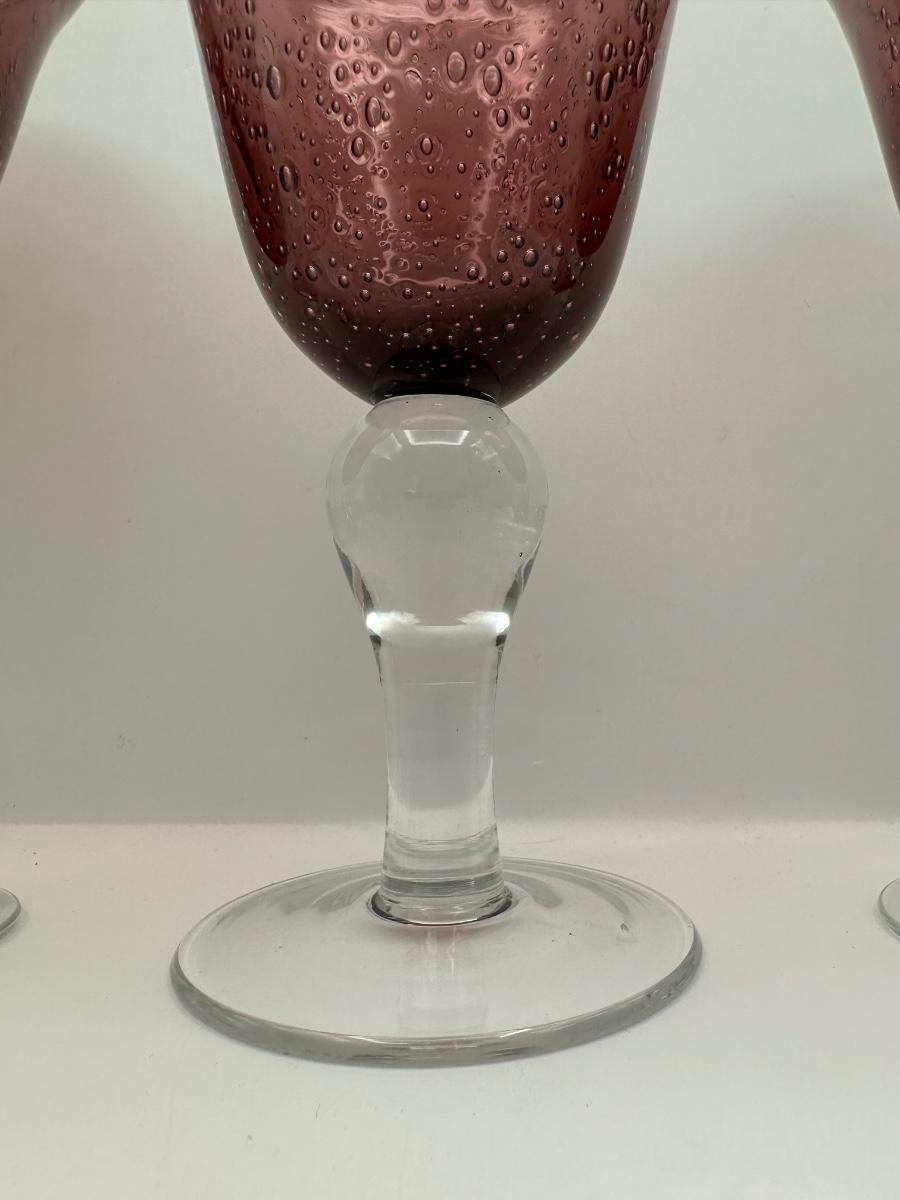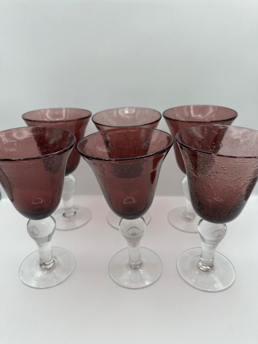 Set of 6 Amethyst Bubble Glass Goblets with Clear Stems