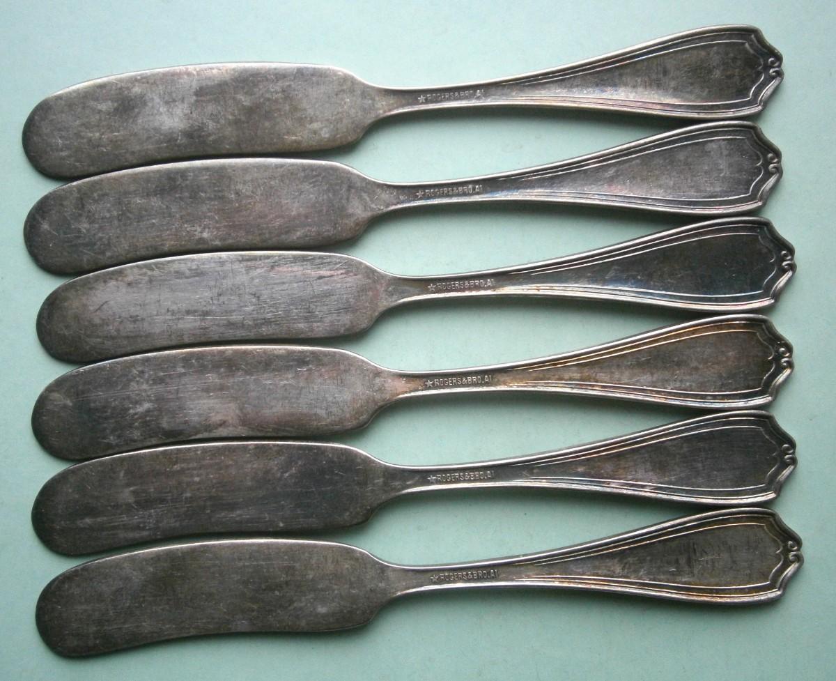 Set of 6 Butter Knives from the early 1900's, by Rogers & Bro., 5 1/2 in. long, silverplate.