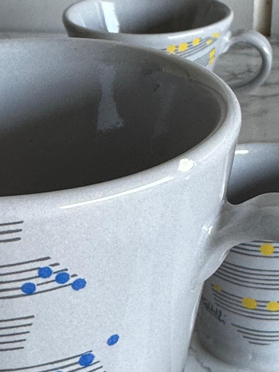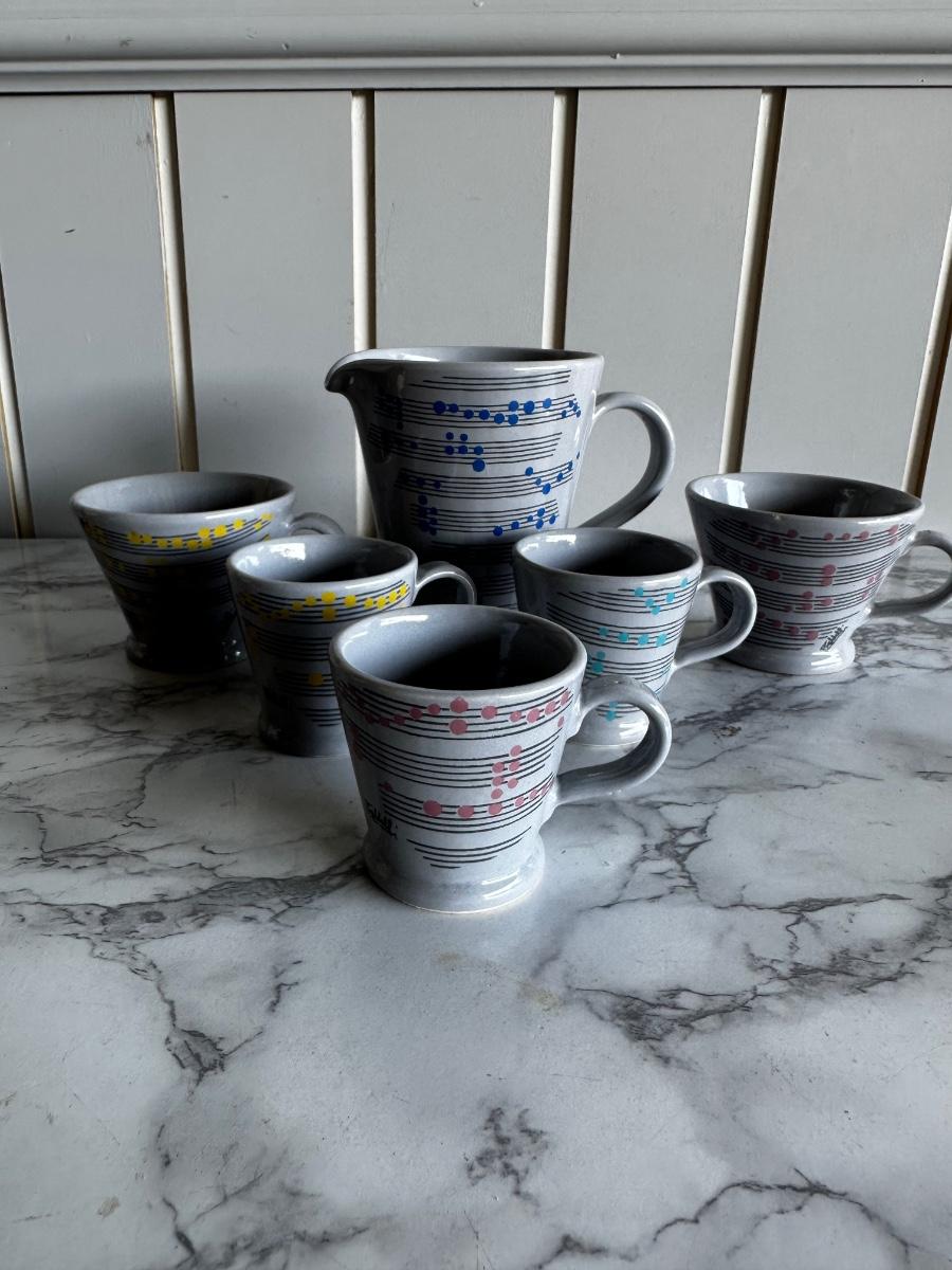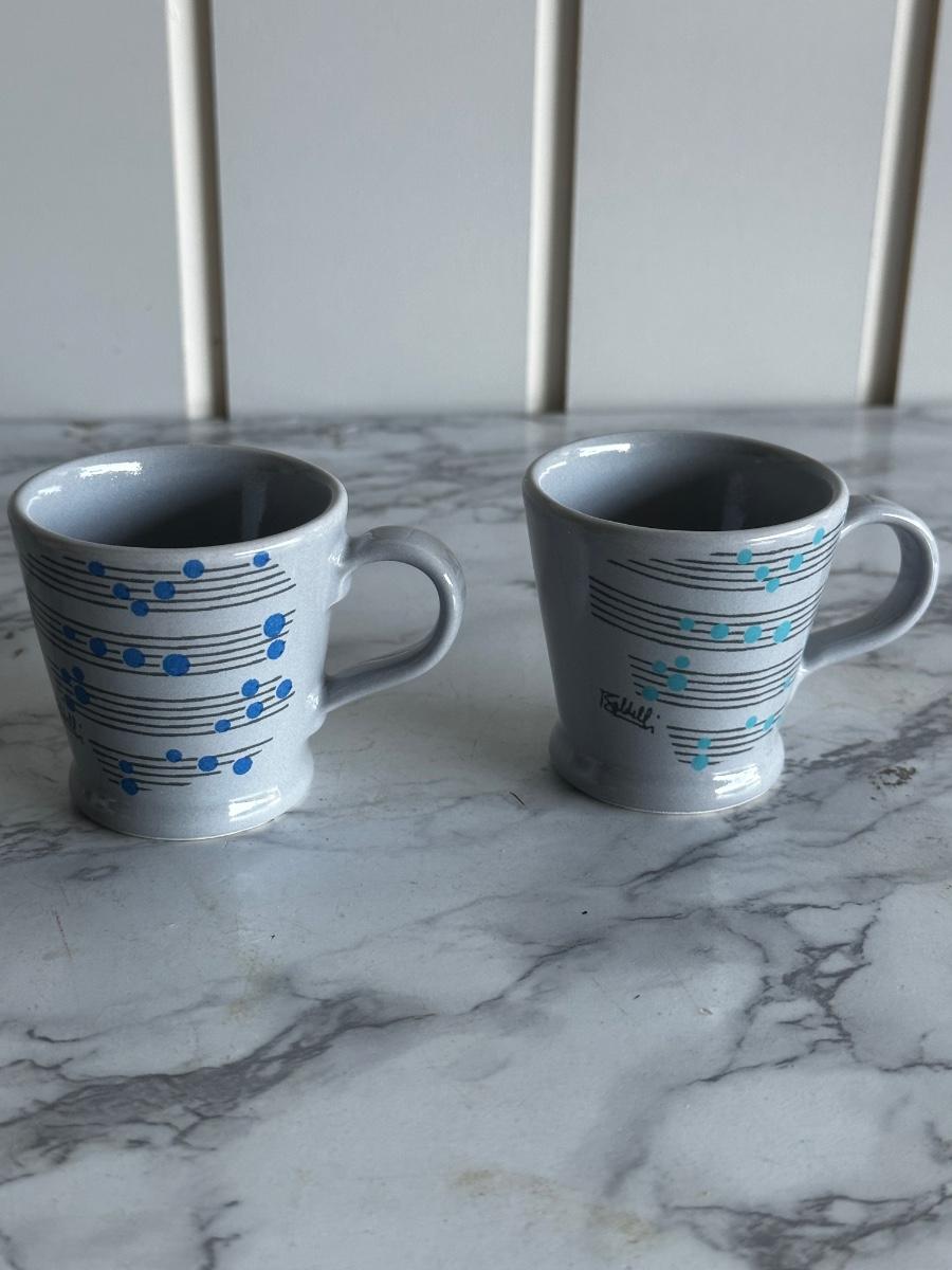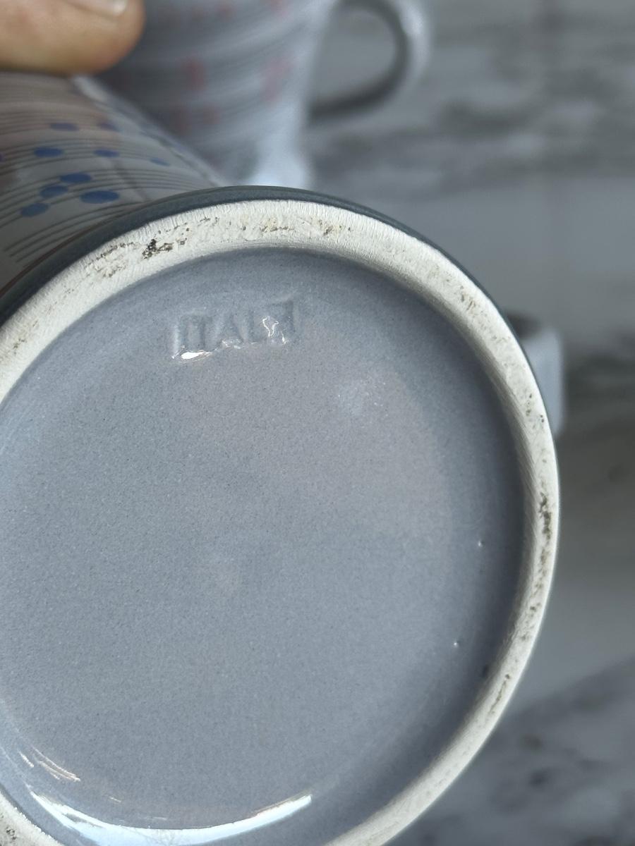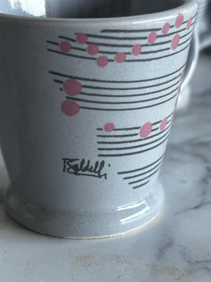 Set of 6 - Baldelli Pottery Italy Musical Note Coffee Tea Cups (Gray)