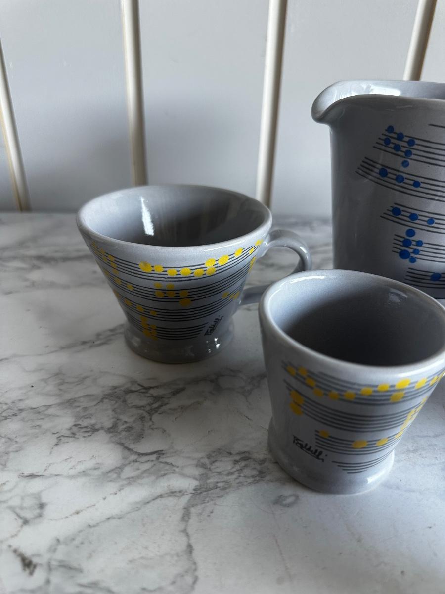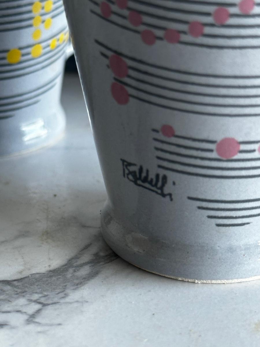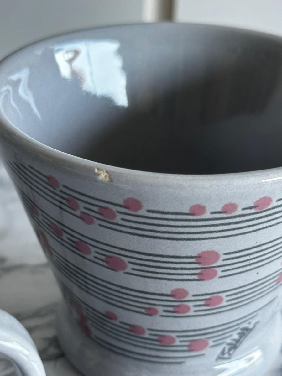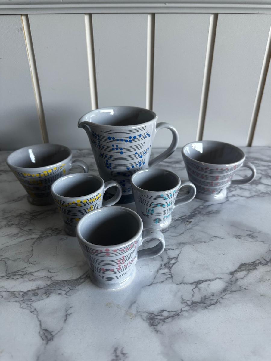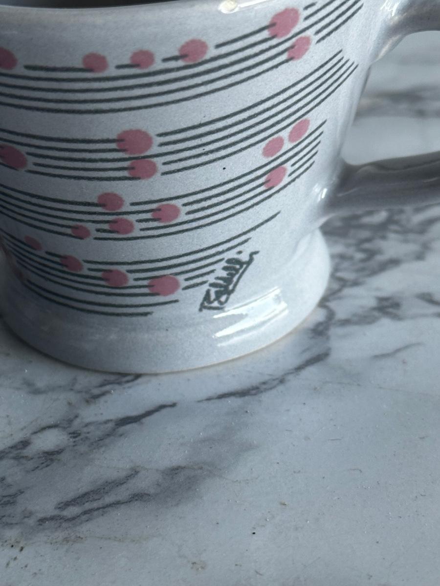 Set of 6 - Baldelli Pottery Italy Musical Note Coffee Tea Cups (Gray)