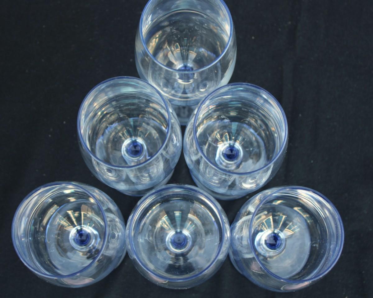 Set of 6 blue tinted stemmed water glasses. Excellent condition.
