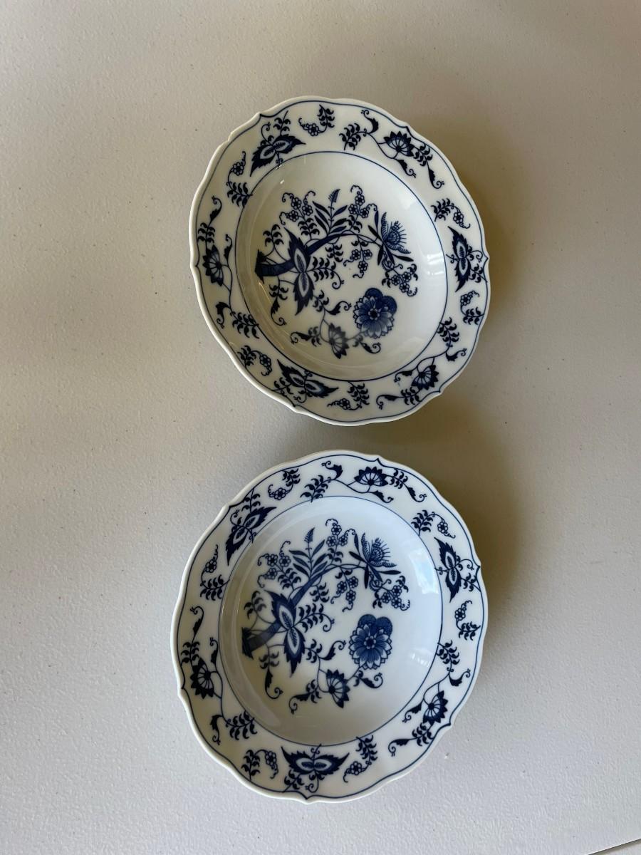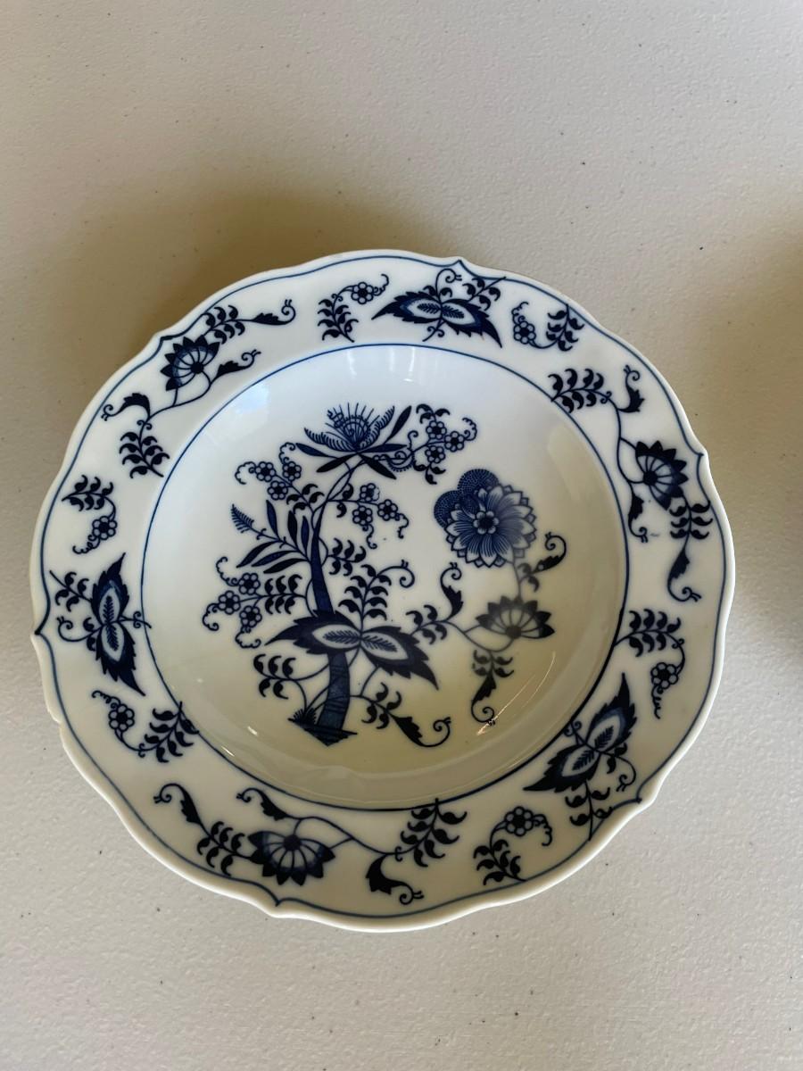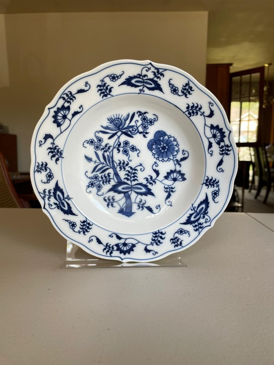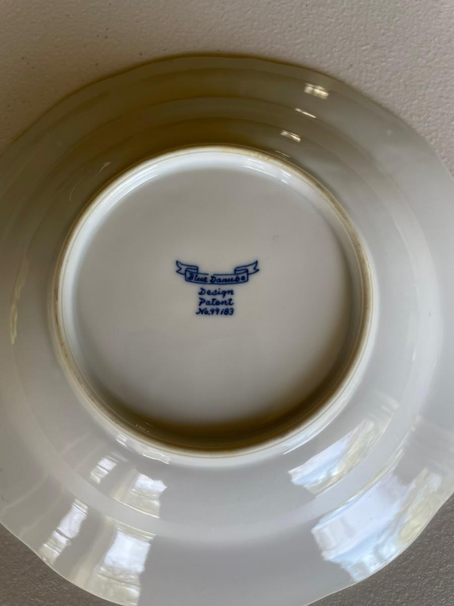Design Patent No. 99183 Blue Danube stamped on the bottom of the dish. 8”(w).