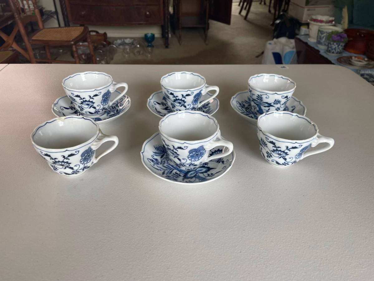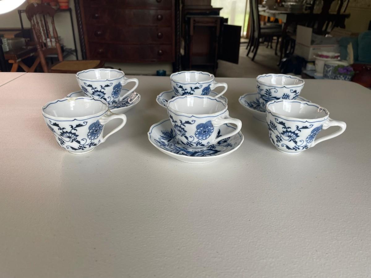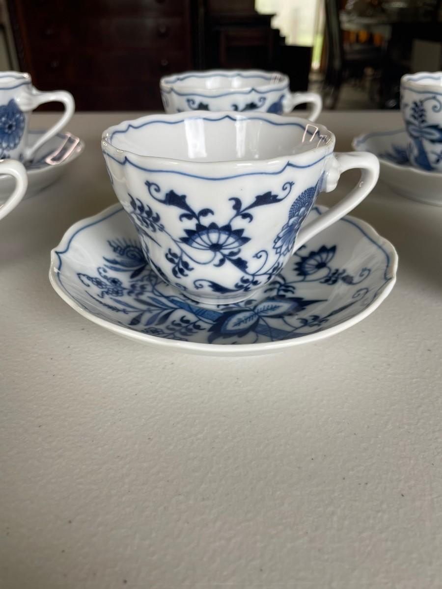 Set of 6 Blue Vintage Danube Tea Cups and Saucers