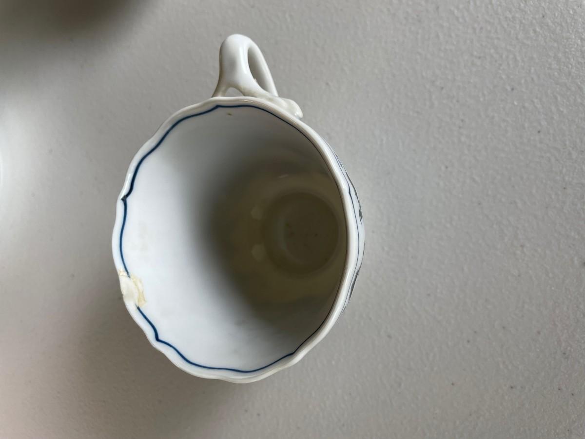 Design Patent No. 99183 Blue Danube stamped on the bottom of the dish. 1 saucer missing.