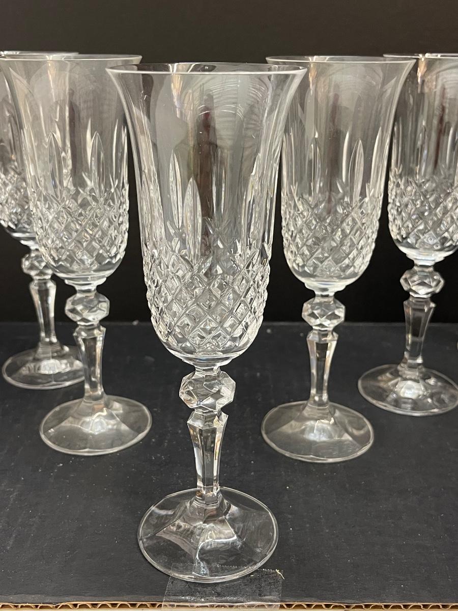 Set of 6 Bohemian Crystal Marquis Fluted Champagne Glass