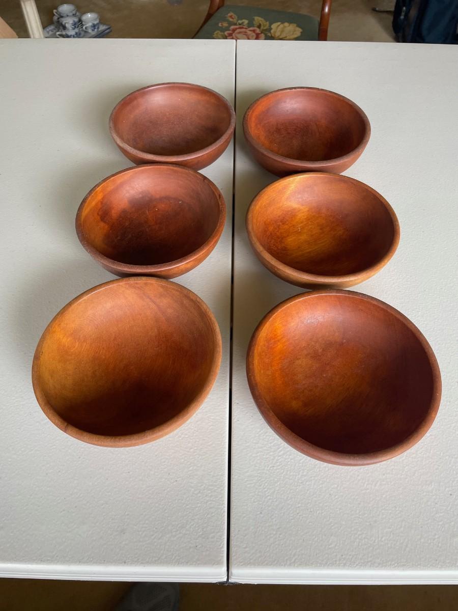 Rustic Solid Wood Bowl Handmade in Occupied Japan Mid Century Vintage solid Wood Bowls. 6W x 2H