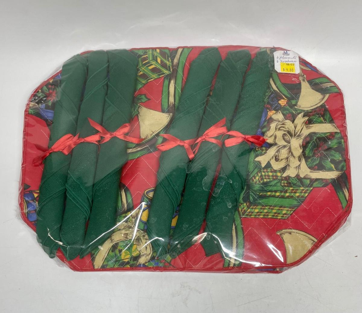 Set of 6 Christmas Placemats and Napkins. New, sealed in plastic.