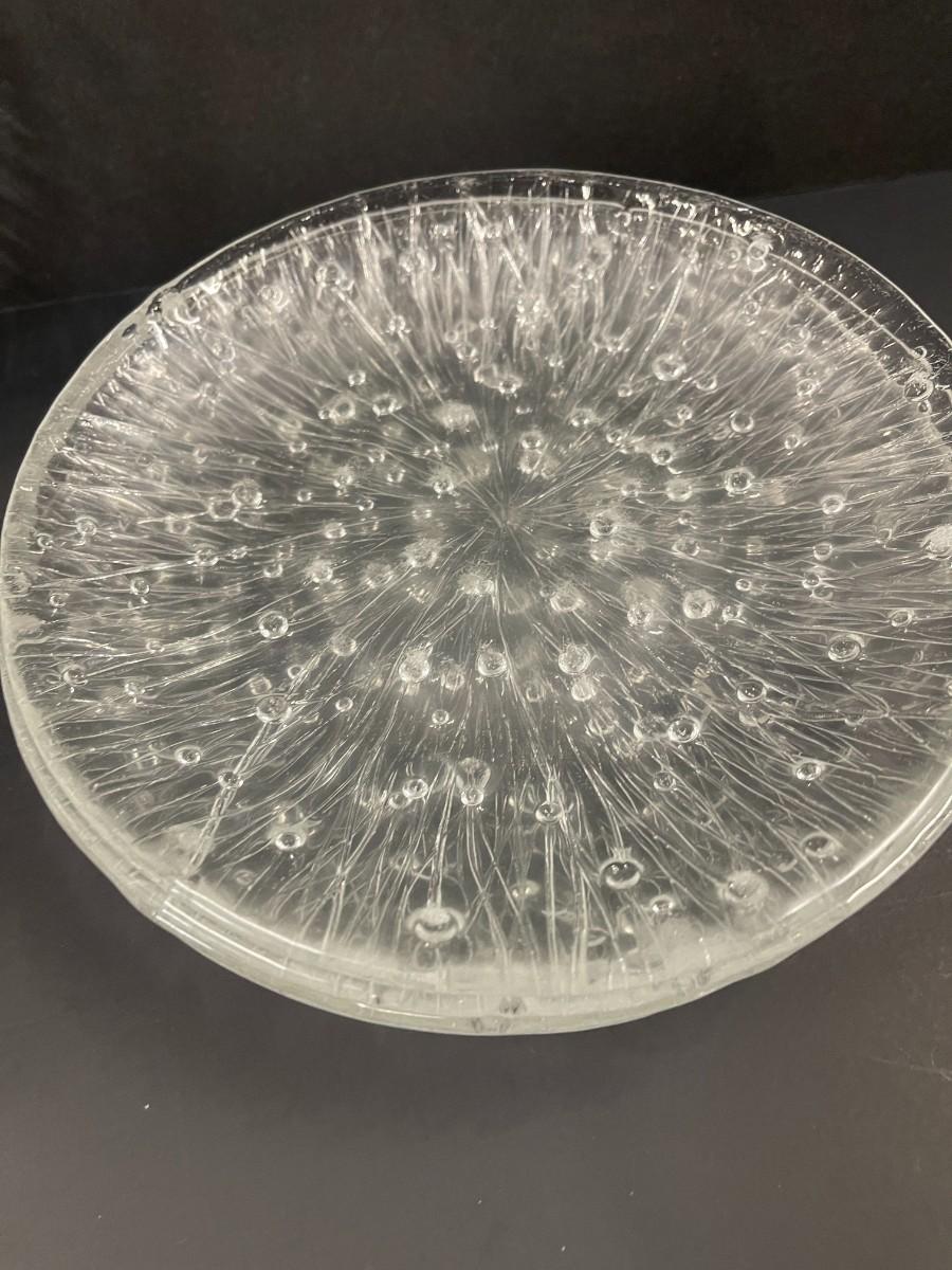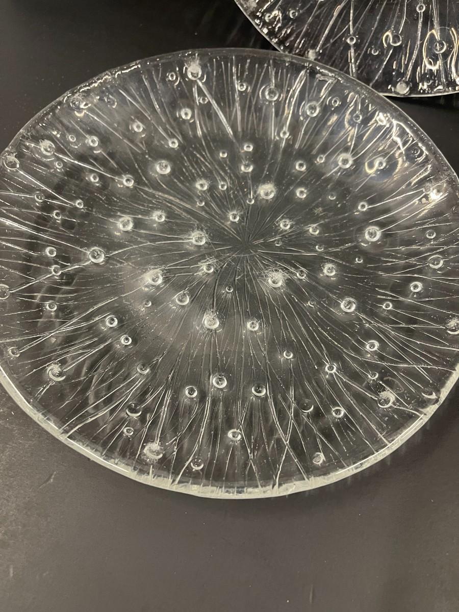 Set of 6 clear glass salad plates with pebbled, textured pattern throughout. Shows wear from being stacked. 8 1/2" diameter.