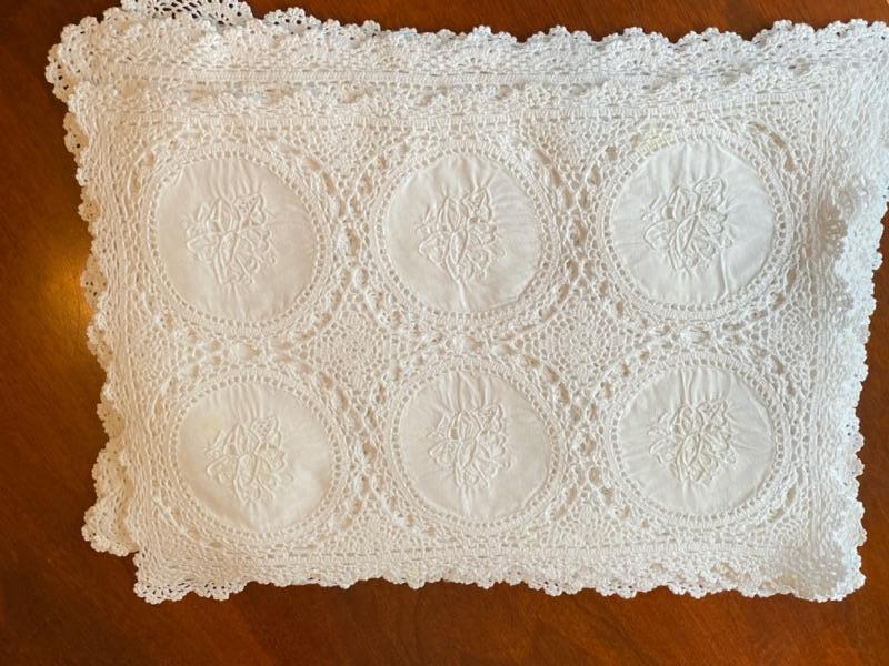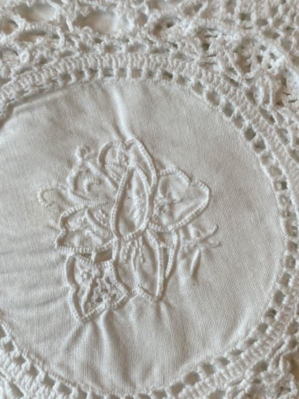 Elegant white cotton embroidered placemats with crochet boarder