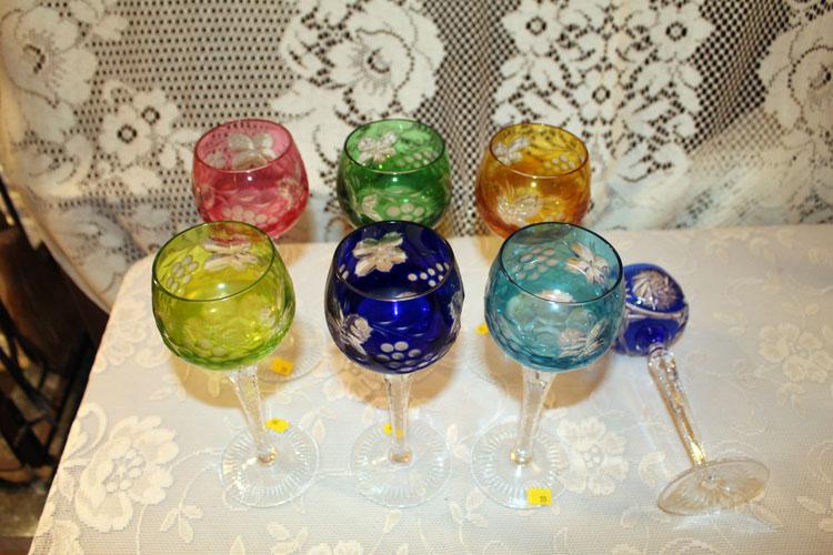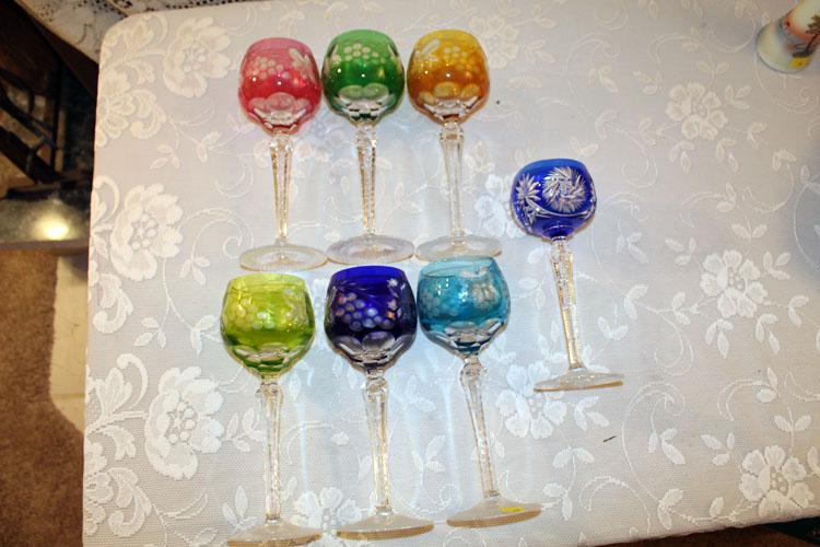 Set of 6 Czechoslovakian crystal cut to clear goblets, with one extra similar goblet (#55)