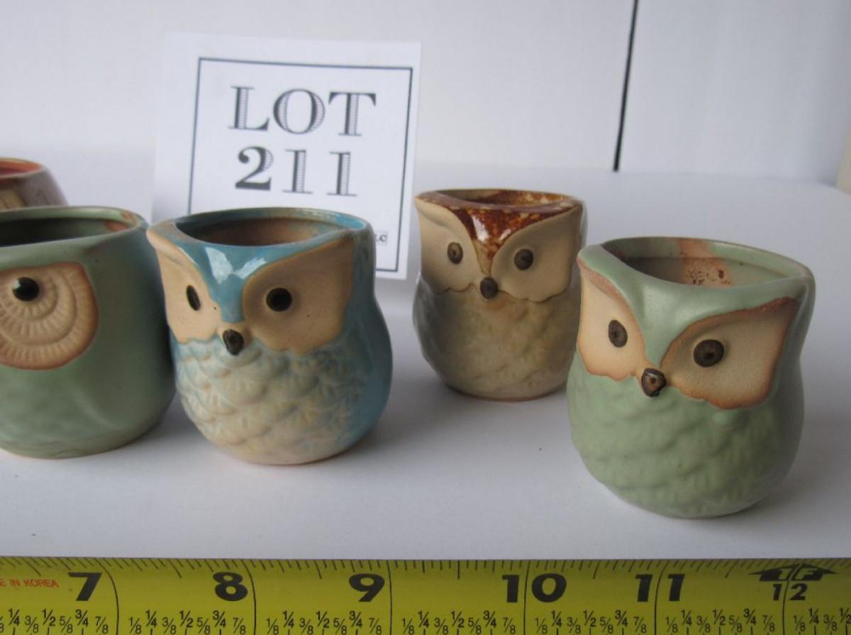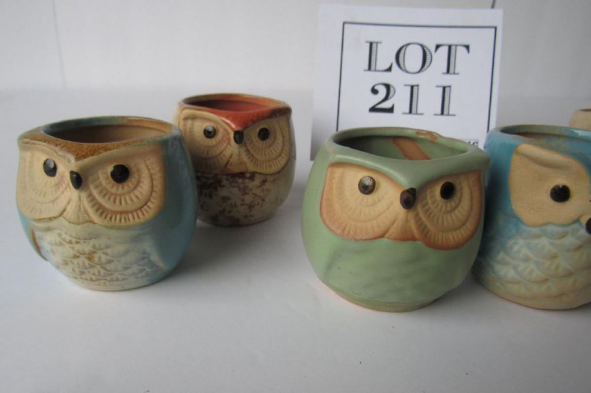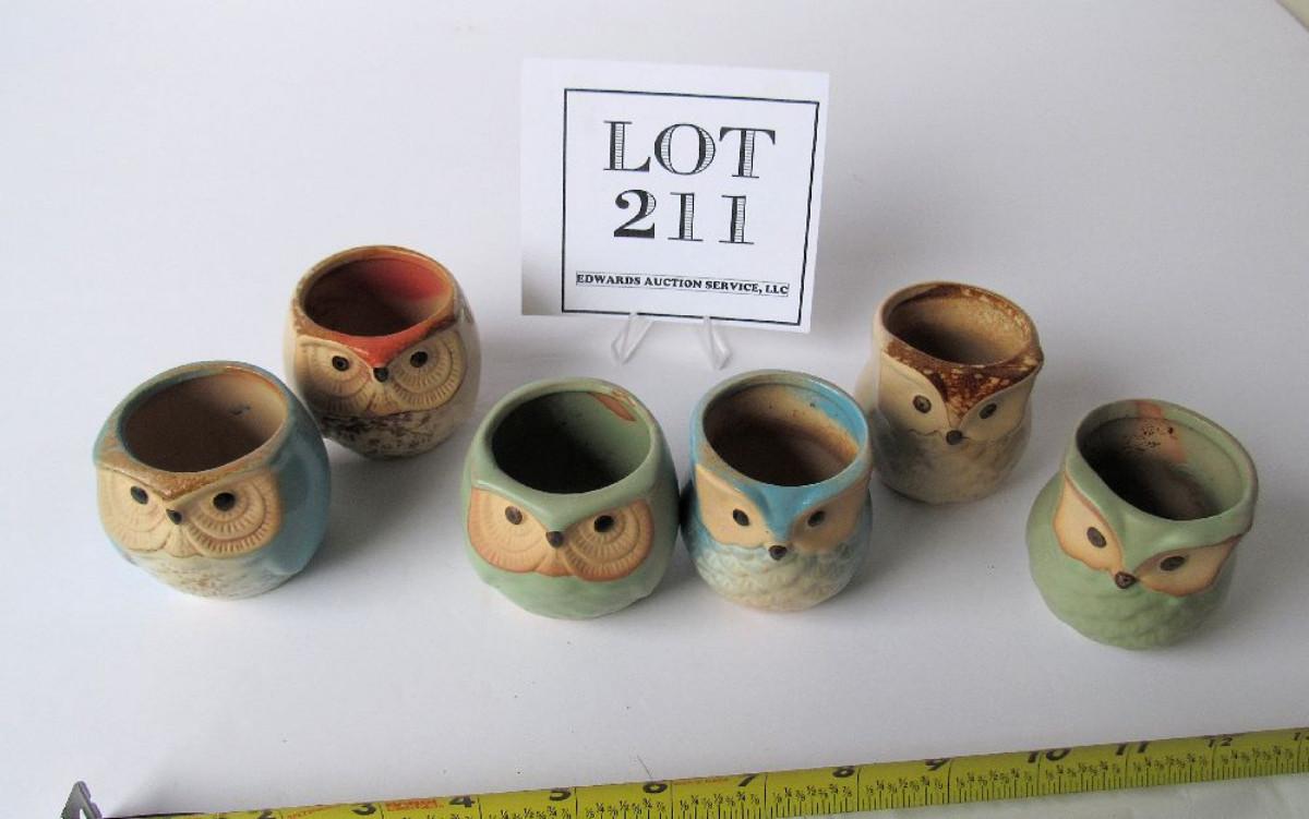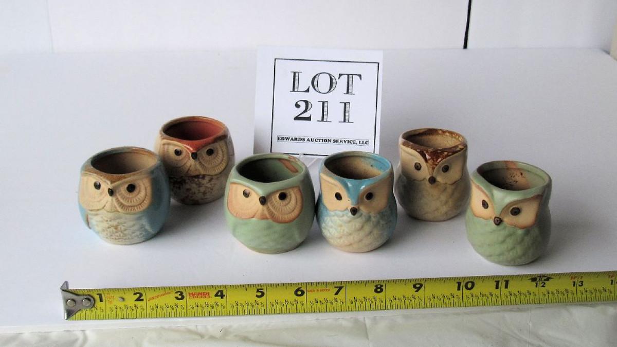 Set of 6 Cute Small Pottery Owl Candle Holders or Tiny Flower Pots