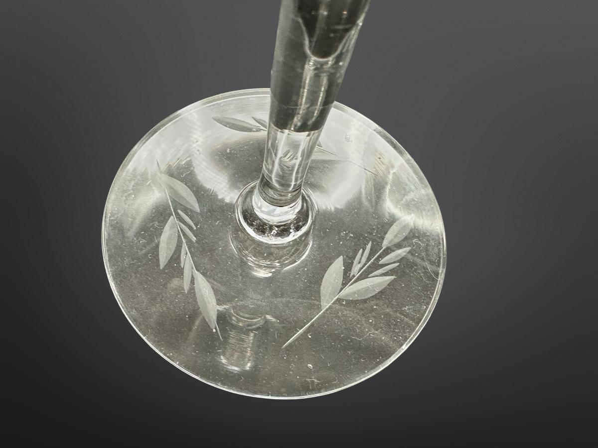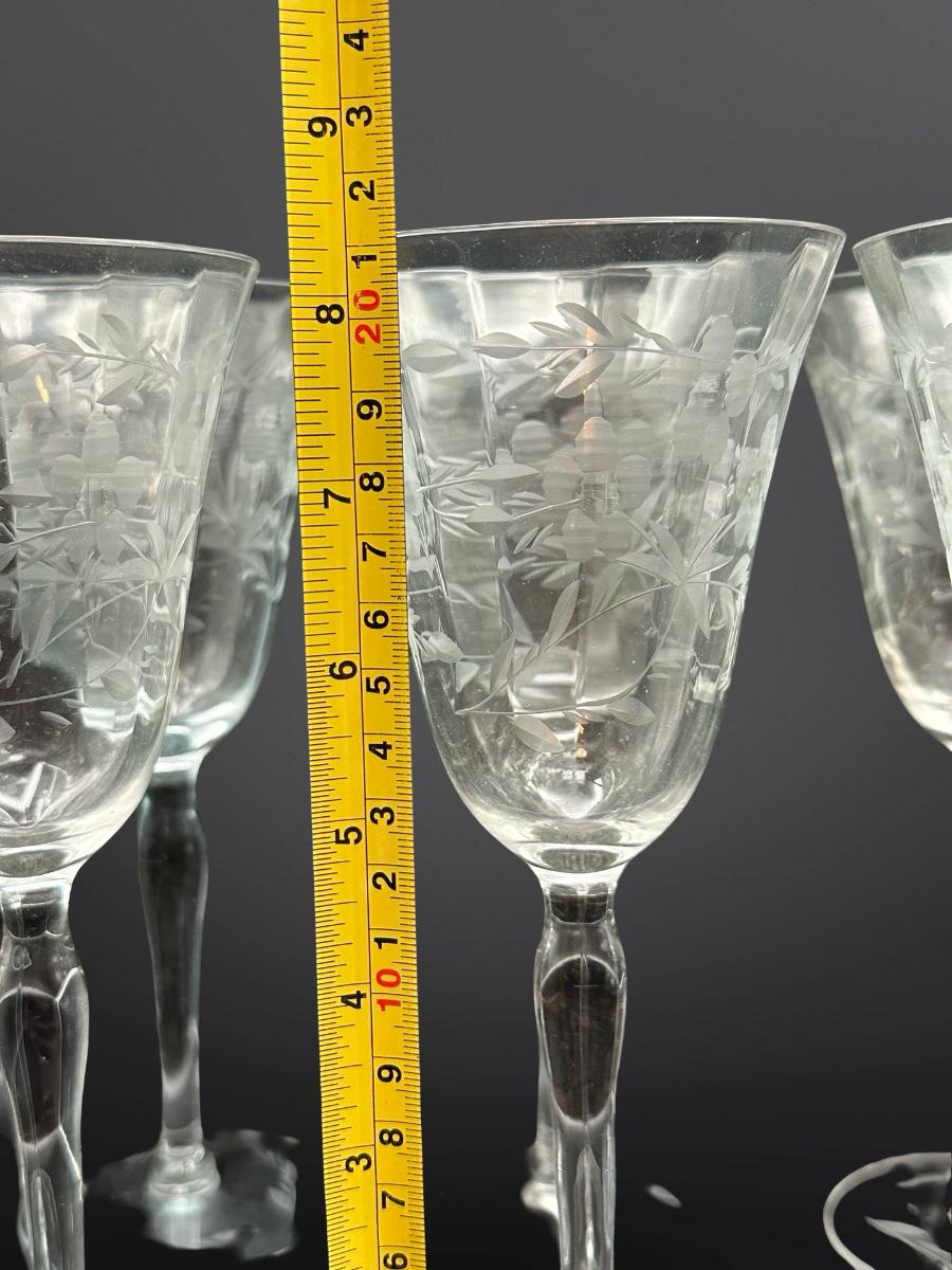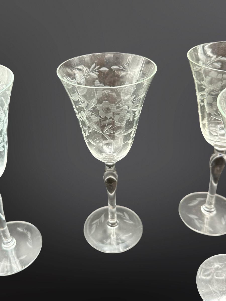 Set of 6 Etched Crystal Wine or Cordial Glasses with Floral and Leaf Design