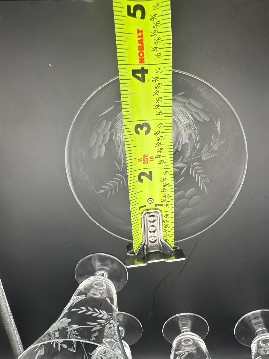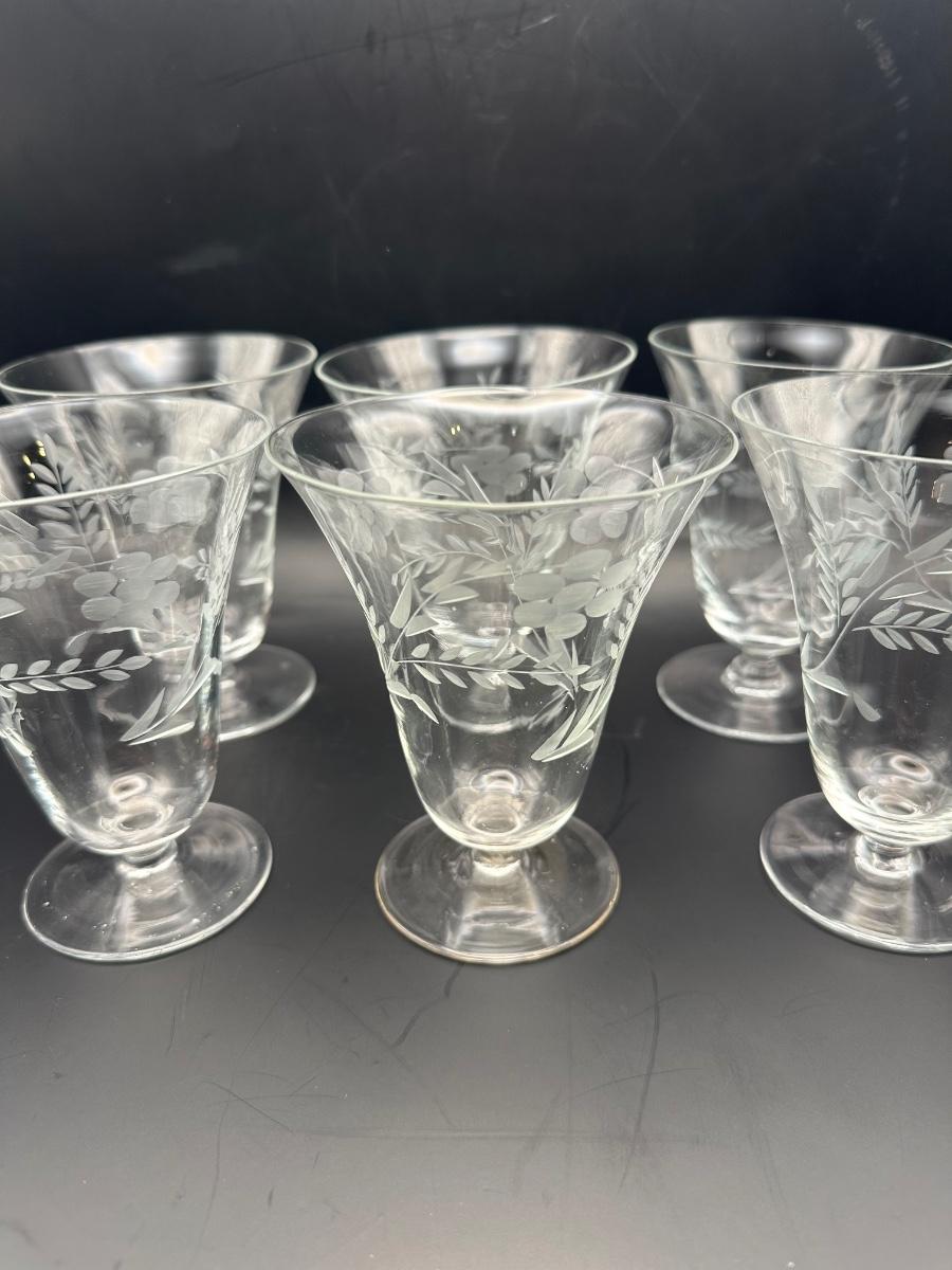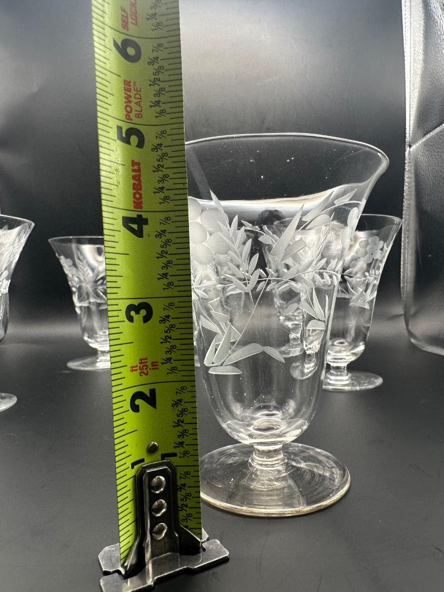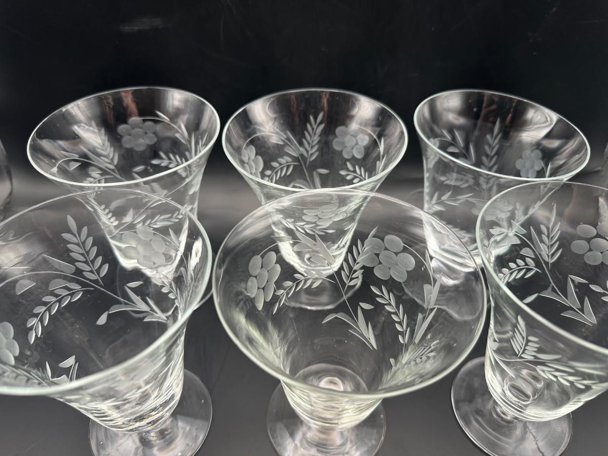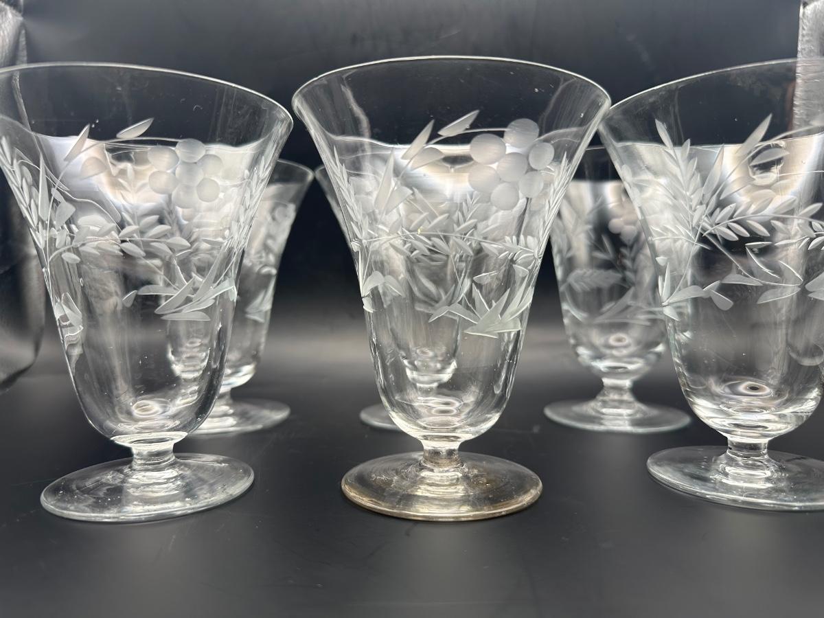 Set of 6 Etched Glass Goblets with Grape & Leaf Motif