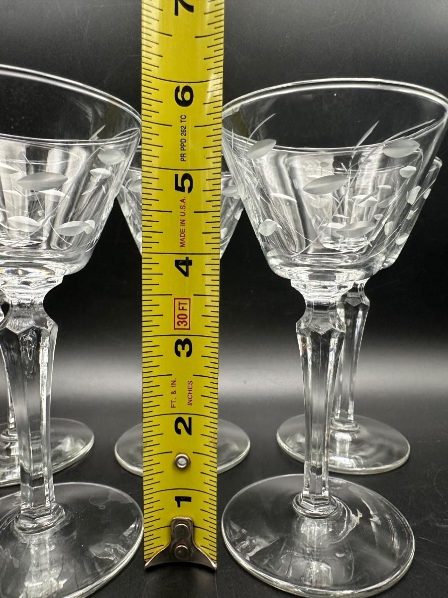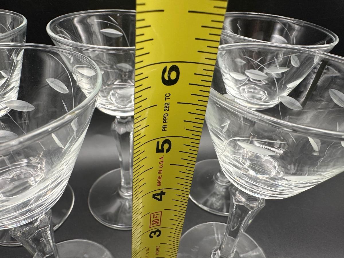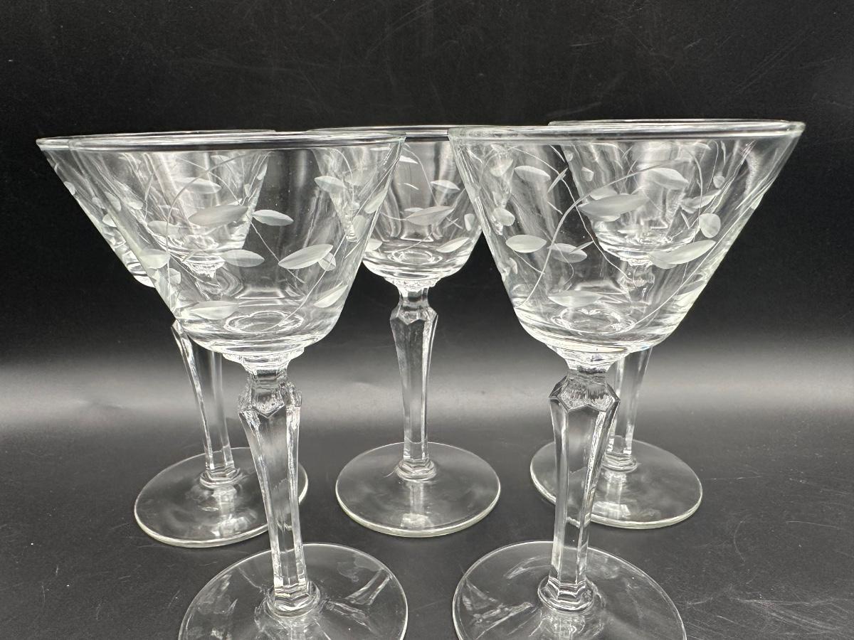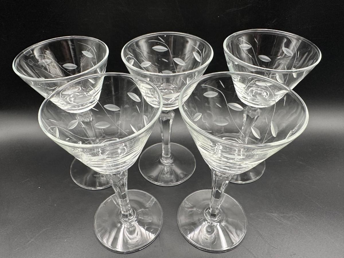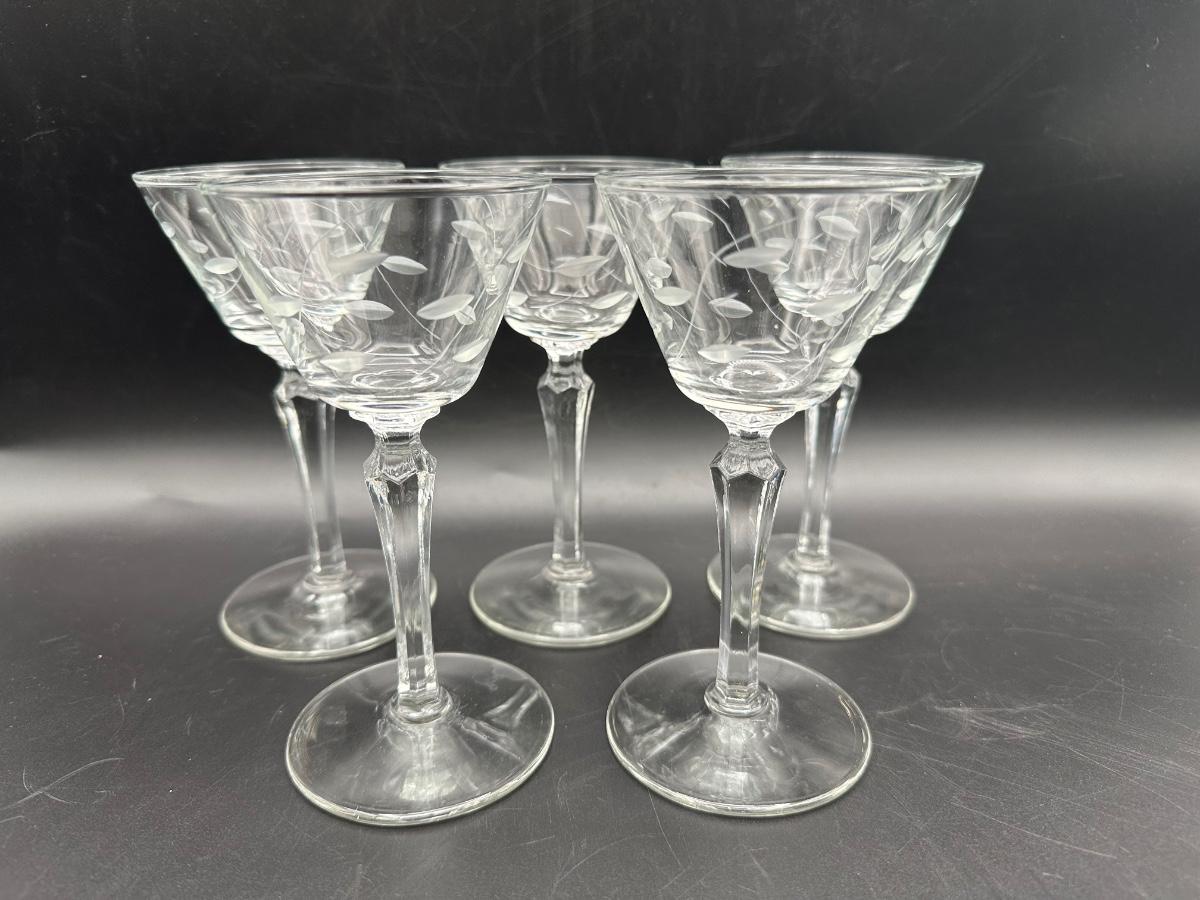 Set of 5 Etched Stemmed Cocktail Glasses – Leaf Pattern