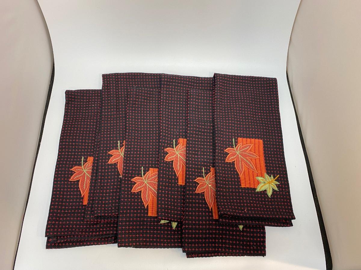 Set of 6 Fall Themed Waffle Weave Dish Hand Towels. No hang tags but they look unused. Nice large size with corner strap for hanging.
