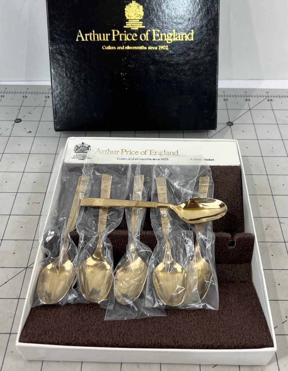 Set of 6 Gold tone, Arthur Price of England Demitasse Spoon