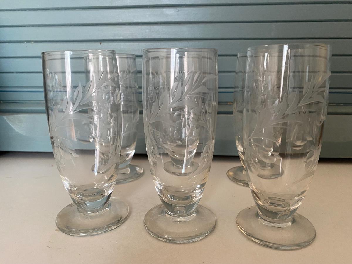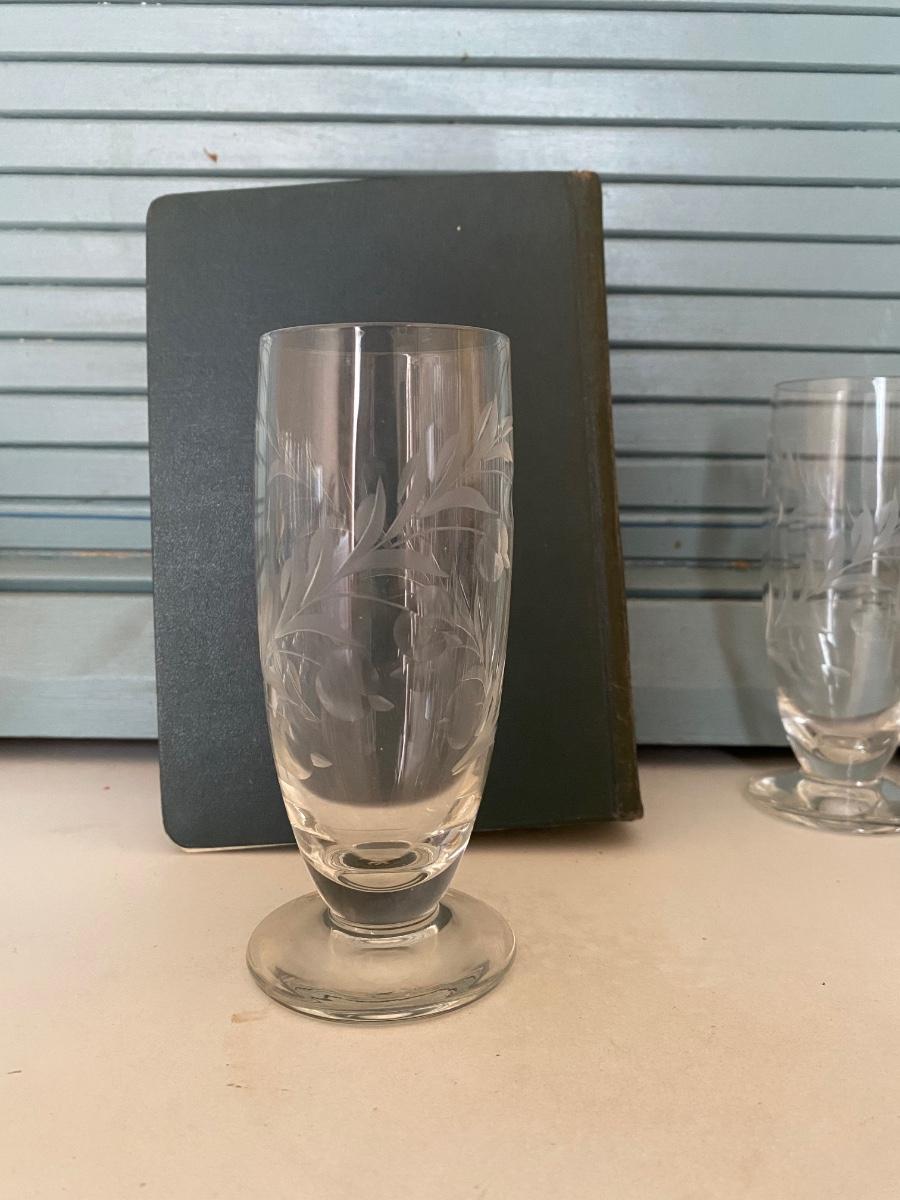 Set of 6 Vintage Gorham cut crystal etched juice glasses