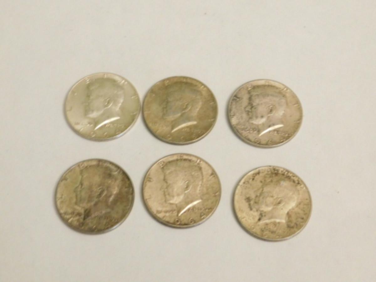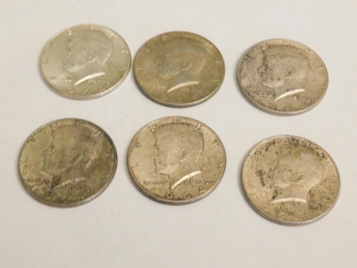 Set of 6 Kennedy Half-Dollar 1964 Silver Coins