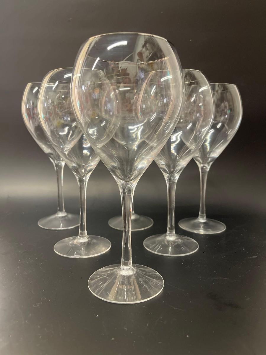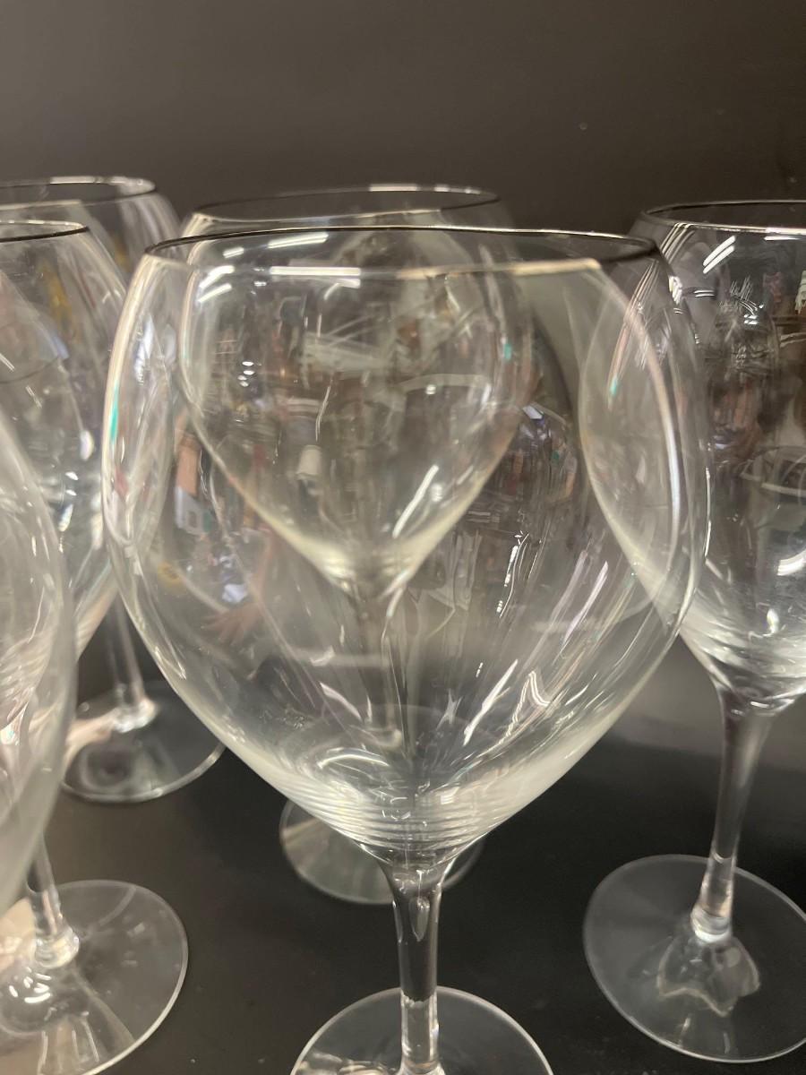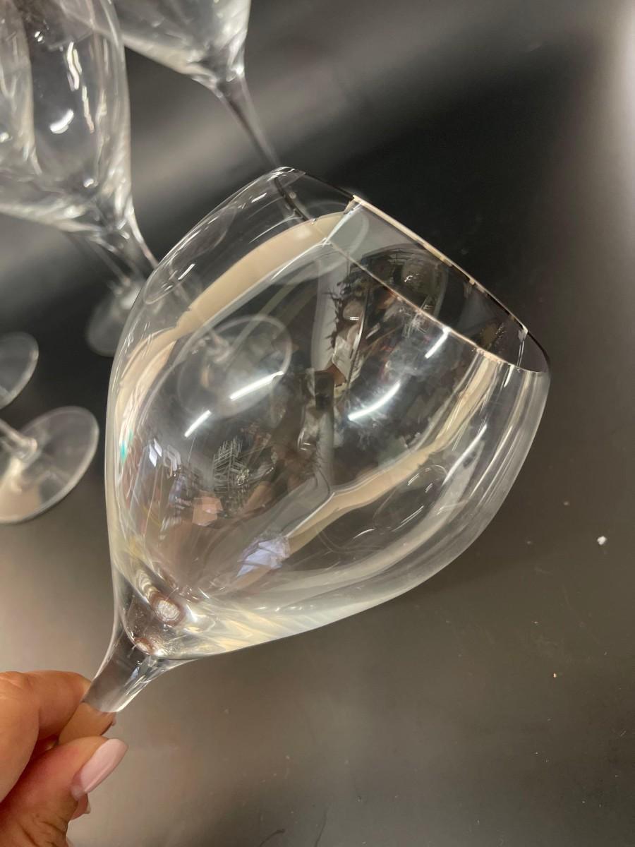 Set of 6 Lenox Silver Rim Wine Glasses. Lenox mark on the bottom of each stem. 8 1/2”. Excellent condition.