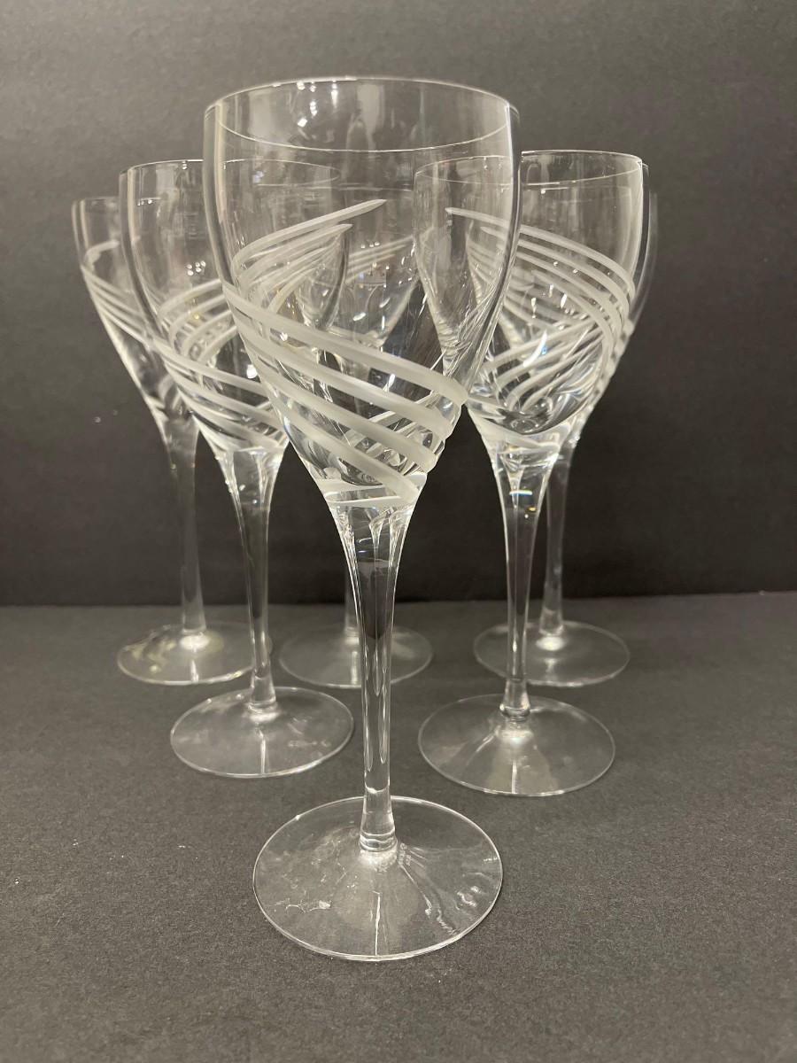 <p>Set of 6 Lenox Windswept Small Wine Glasses. Approx 8”. Excellent condition. Lenox mark on the bottom of the stem. </p>