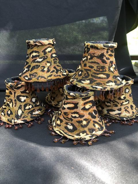 Beautiful Fabric Shades lined with black fabric and surrounded with amber beads.