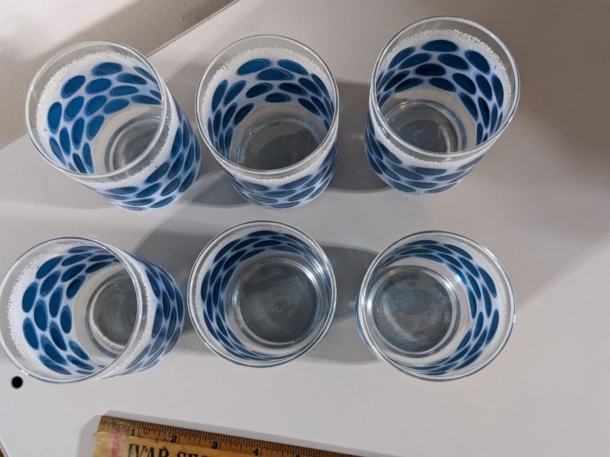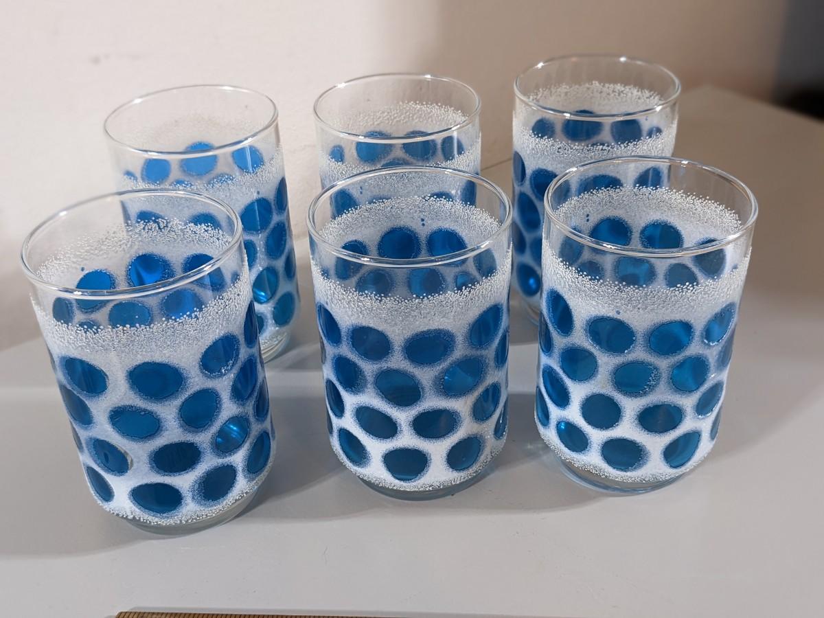 Set of 6 Libbey Glass Tumblers Turquoise Concord 1960s Blue Dot
